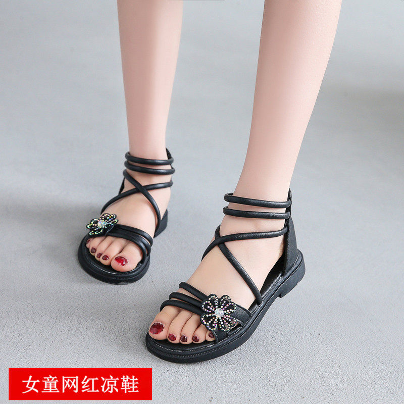 Летние розовые сандалии для принцессы, популярно в интернете, в цветочек, в западном стиле, мягкая подошва