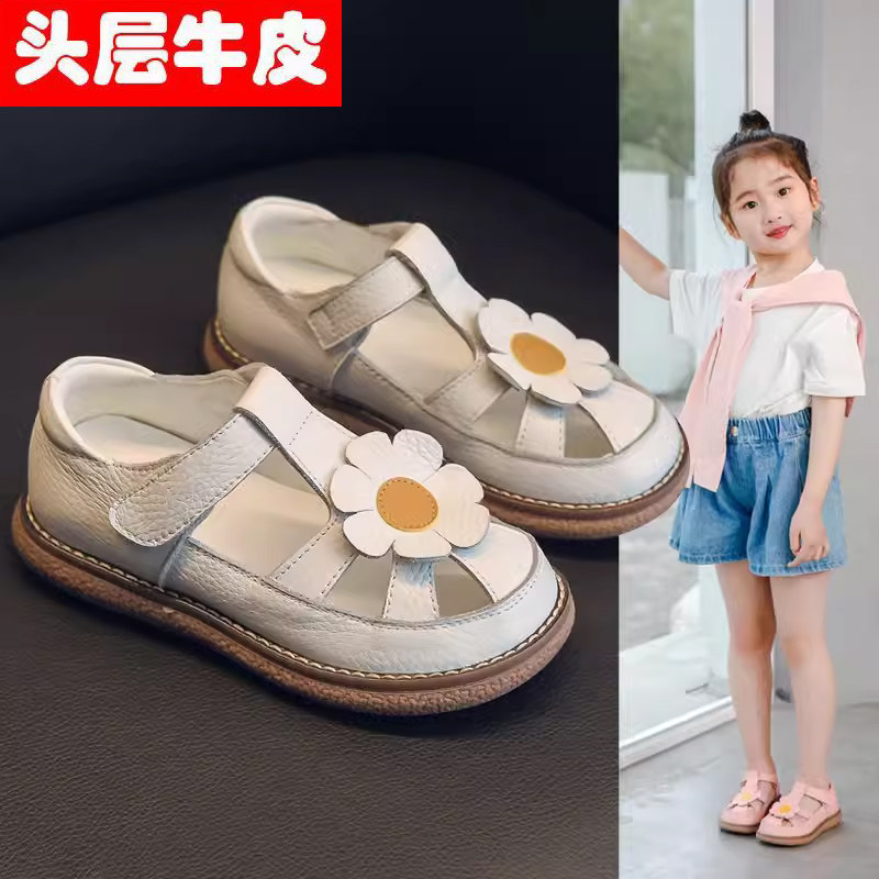 Кожаные сандалии для принцессы, летняя детская сумка для обуви, пляжная обувь, воловья кожа, мягкая подошва