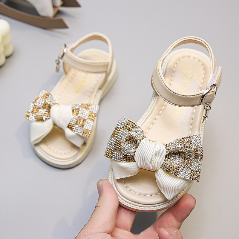Летние модные сандалии, детский наряд маленькой принцессы с бантиком, пляжная пляжная обувь, мягкая подошва