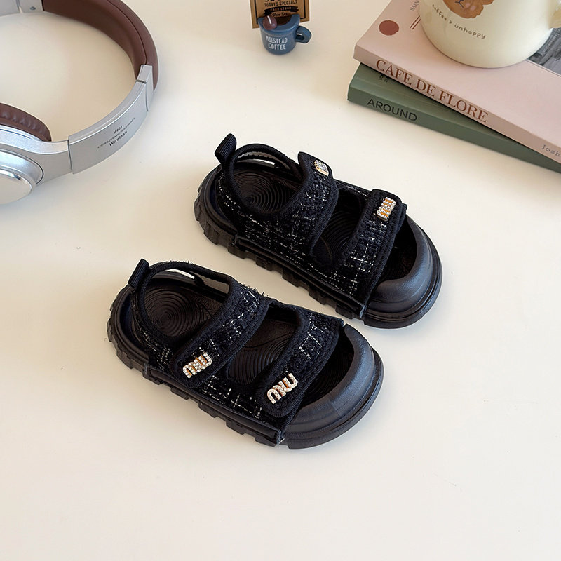 Сандалии, летняя детская спортивная обувь, слайдеры для принцессы, в стиле Шанель, популярно в интернете
