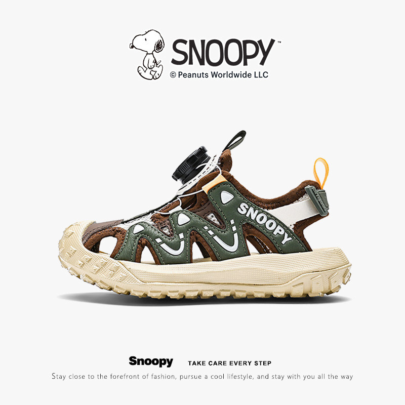 Snoopy, черные летние босоножки для мальчиков, нескользящая детская пляжная обувь
