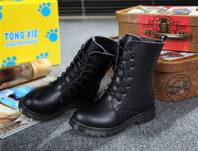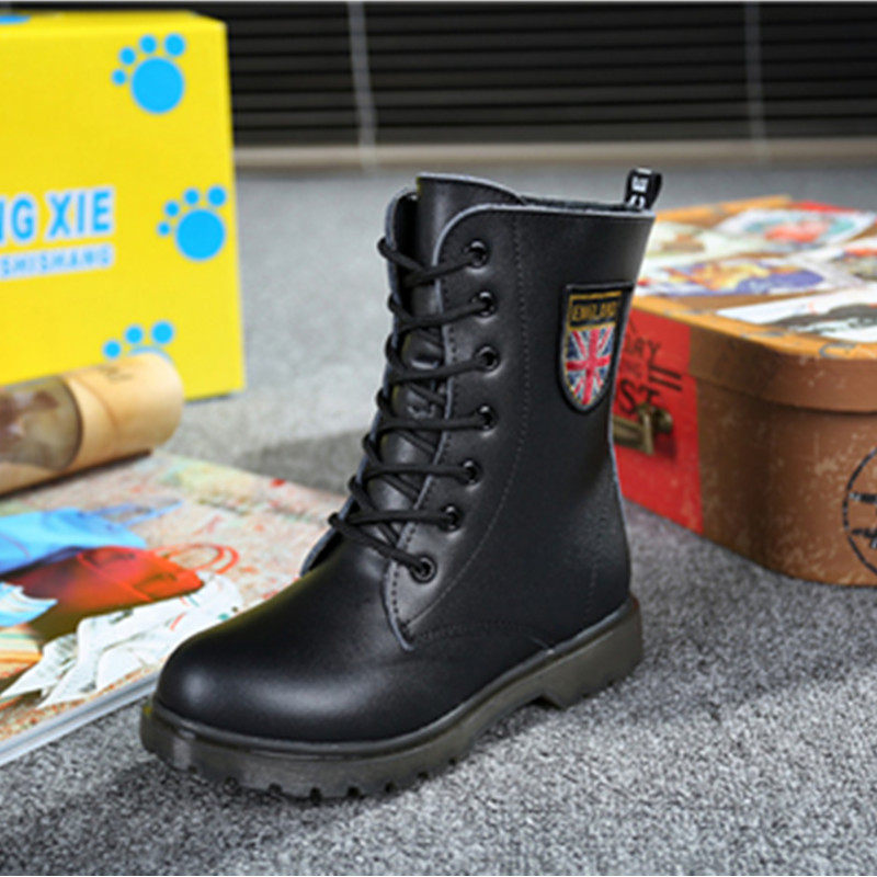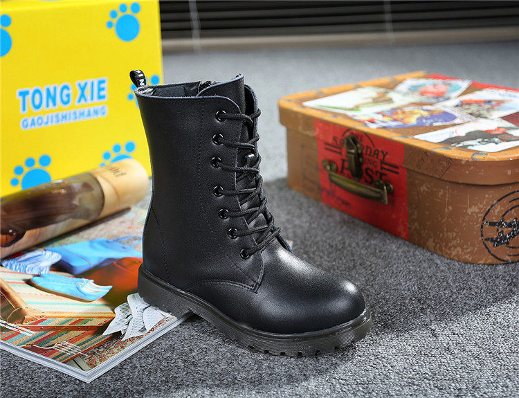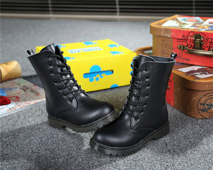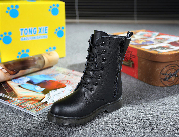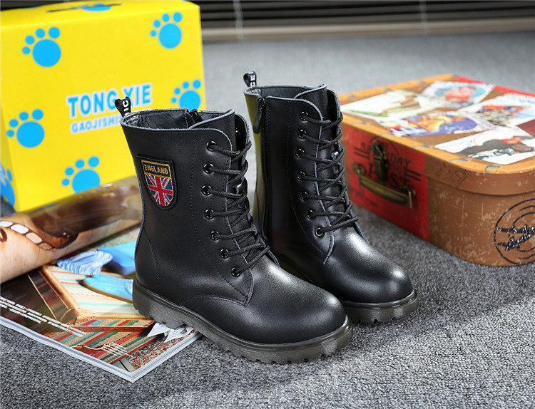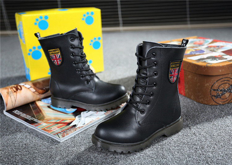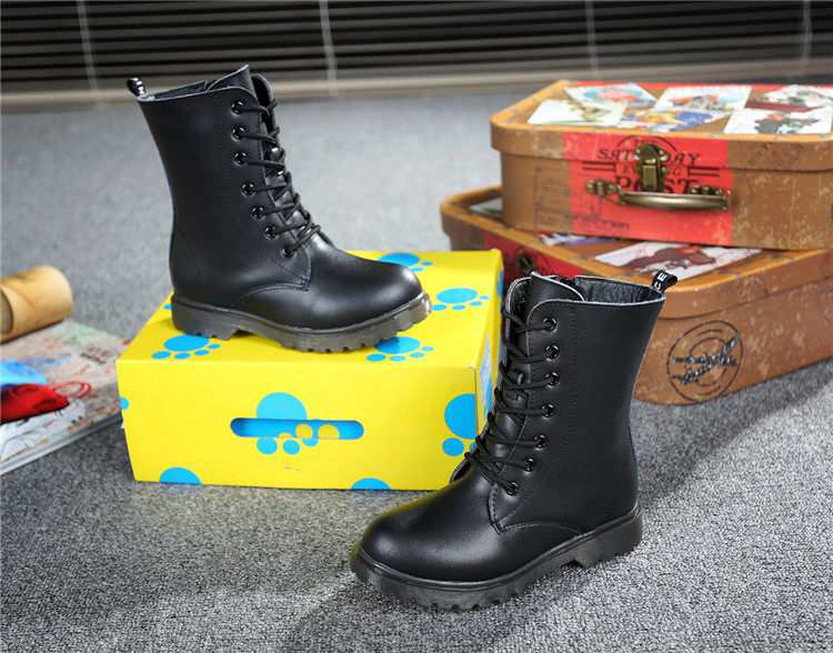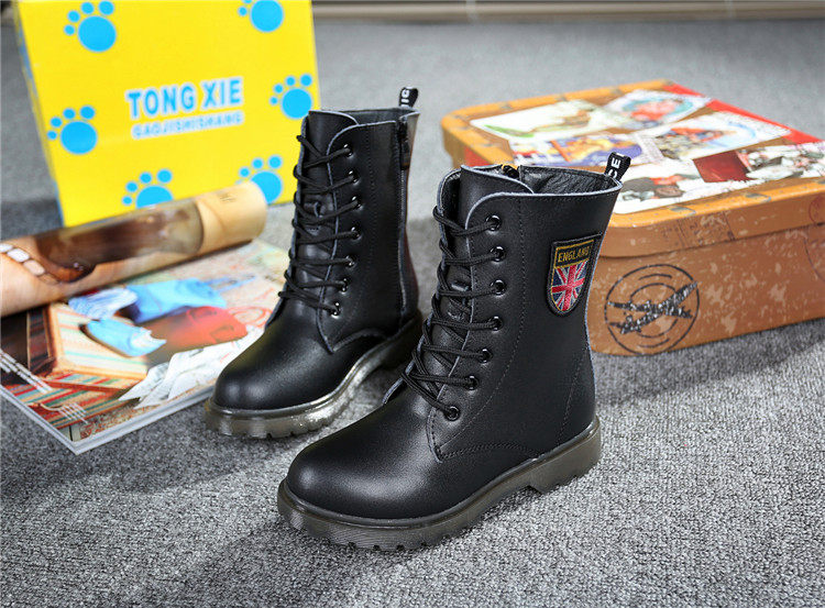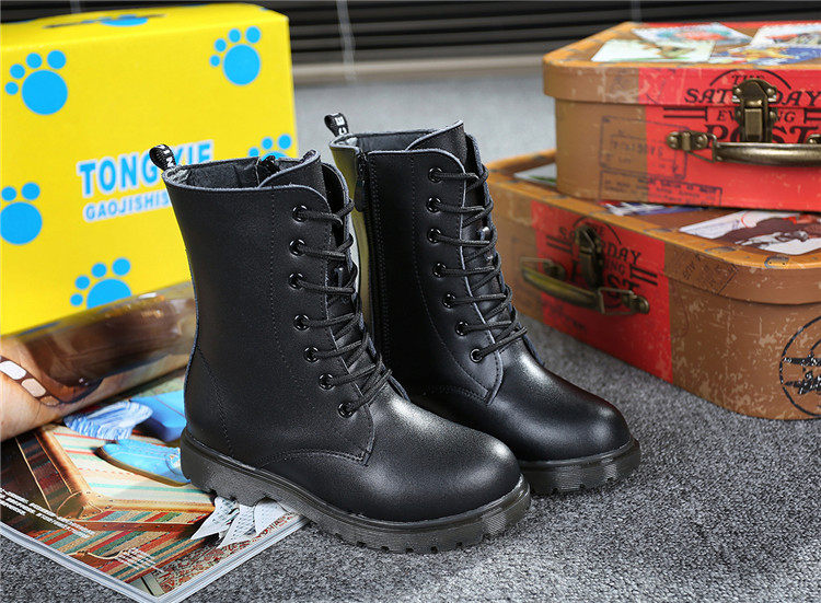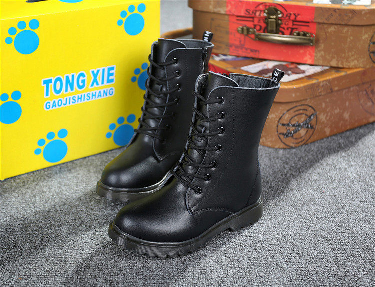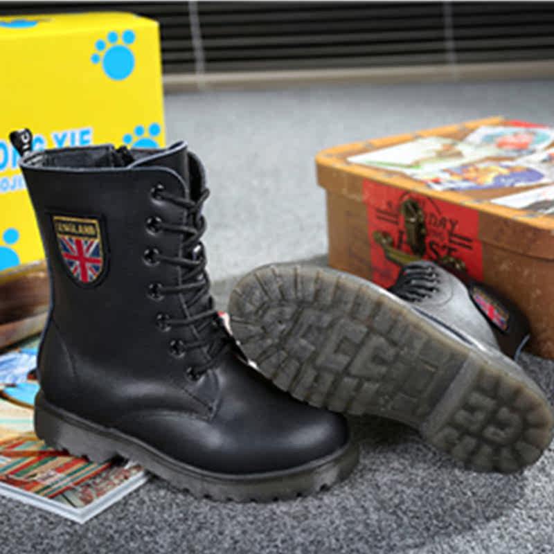 Martens, черные флисовые детские сапоги для мальчиков, модель весна/осень 2021 года, из натуральной кожи, подходит для подростков