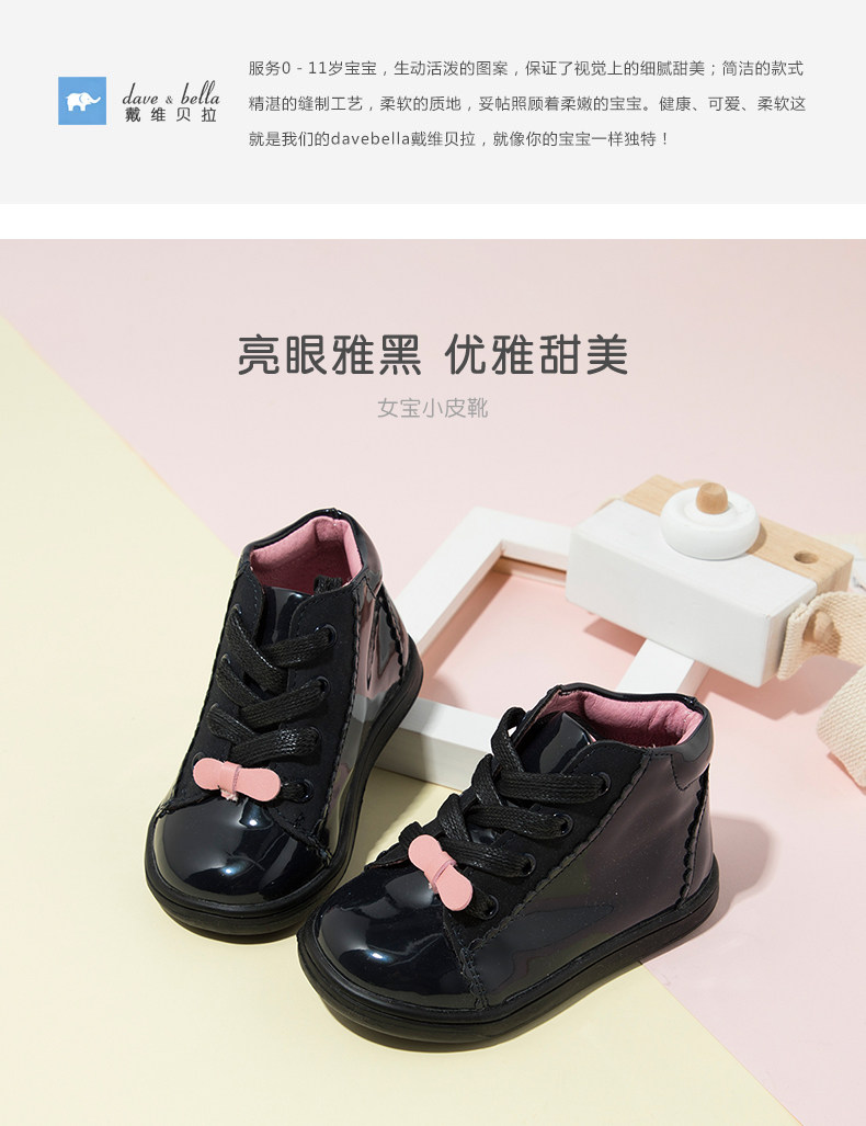 Дейвбелла Дэвид Белла осень Новая девочка Кожаные ботинки Дети и девочки Дети Дети красивые короткие ботинки