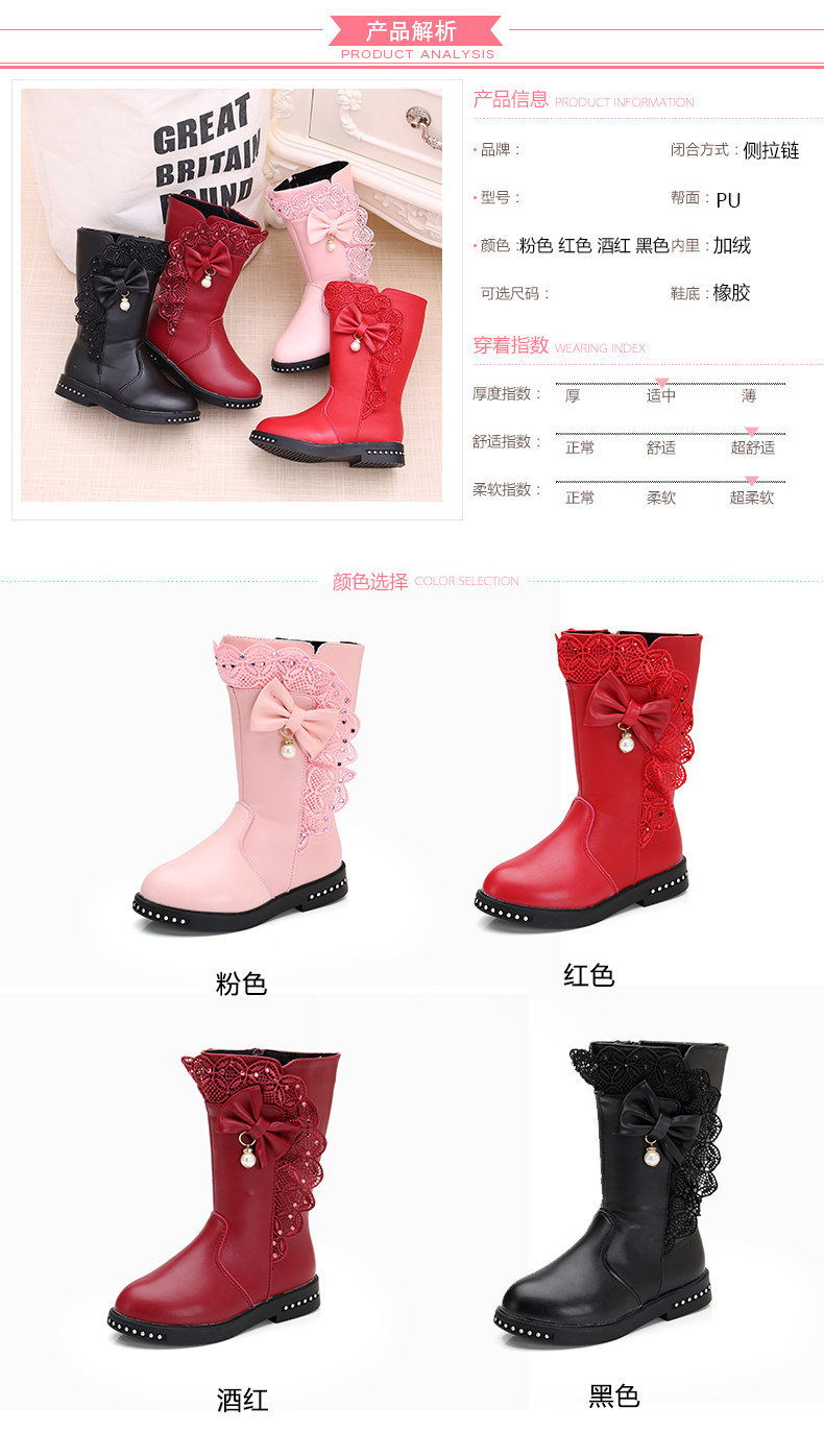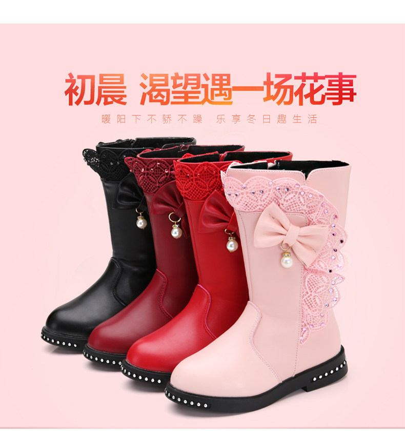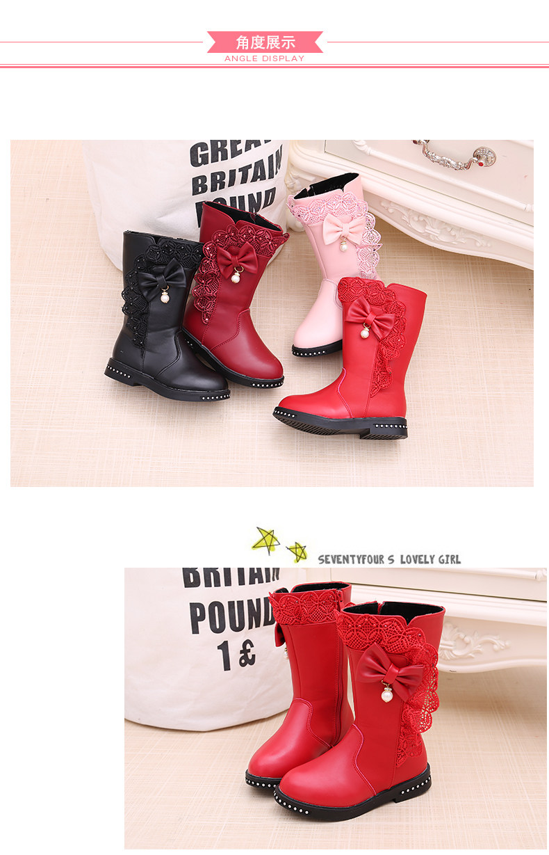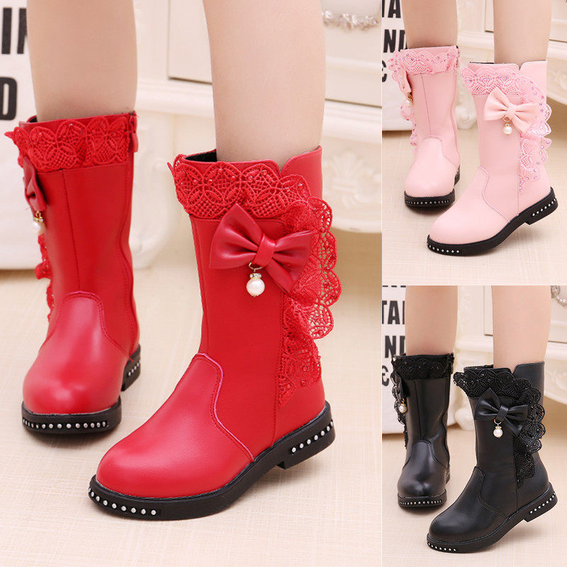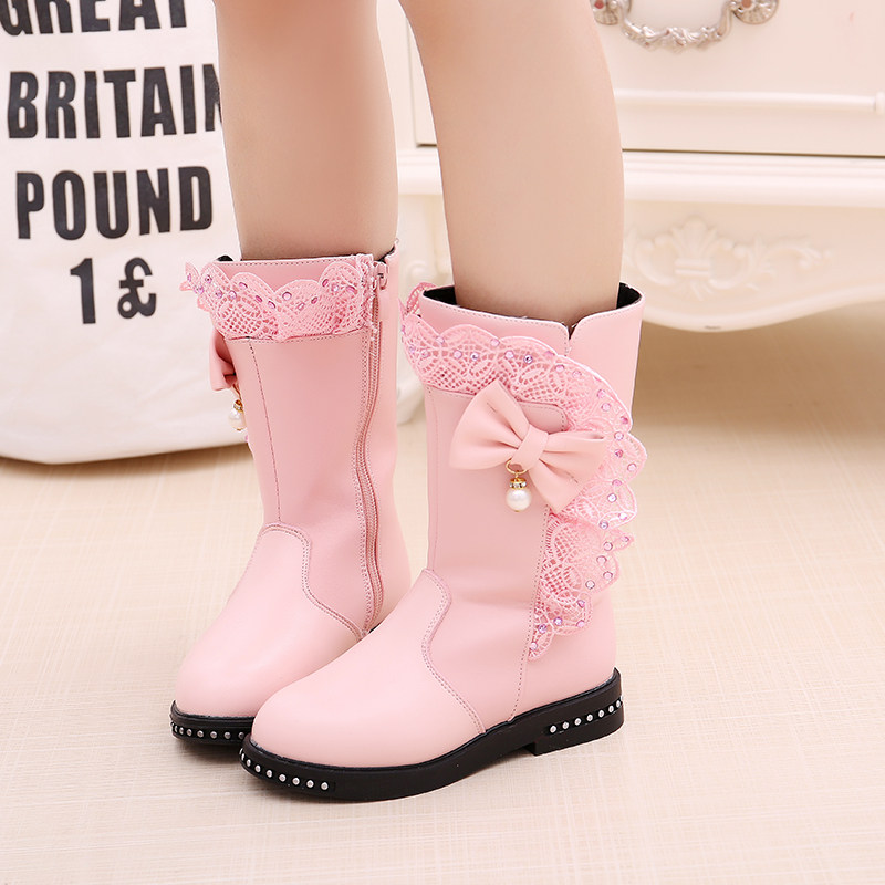 Зимние ботинки, модные детские флисовые высокие сапоги для принцессы, городской стиль, в корейском стиле