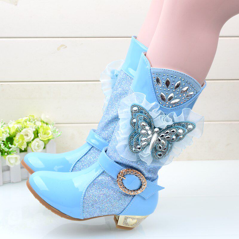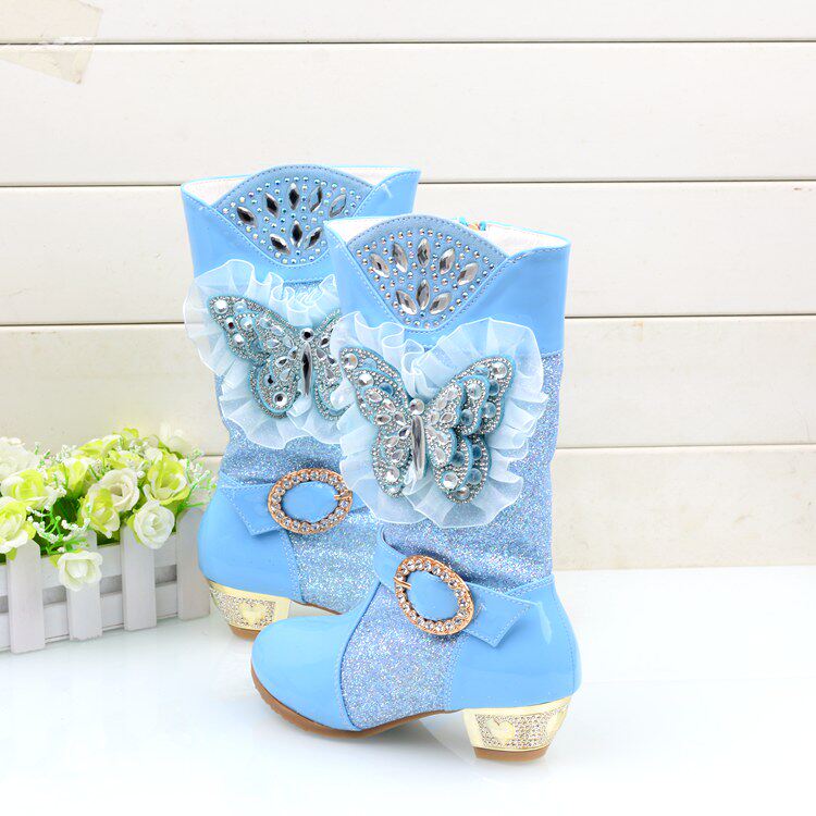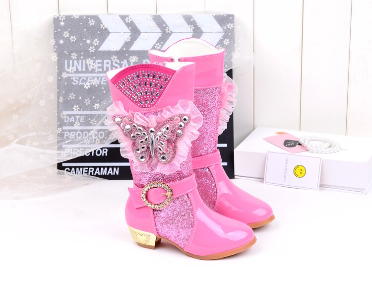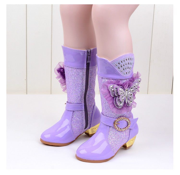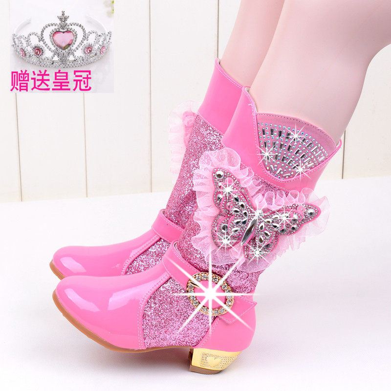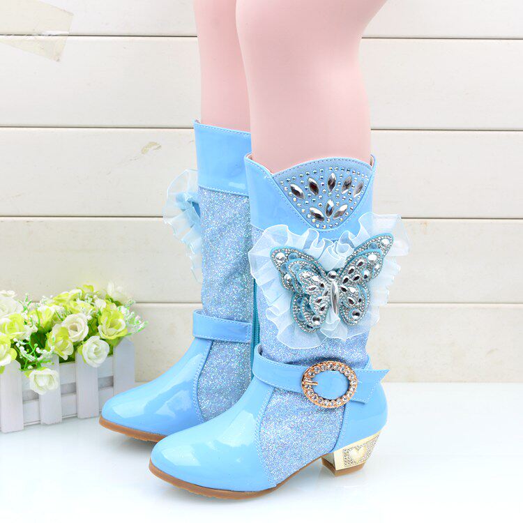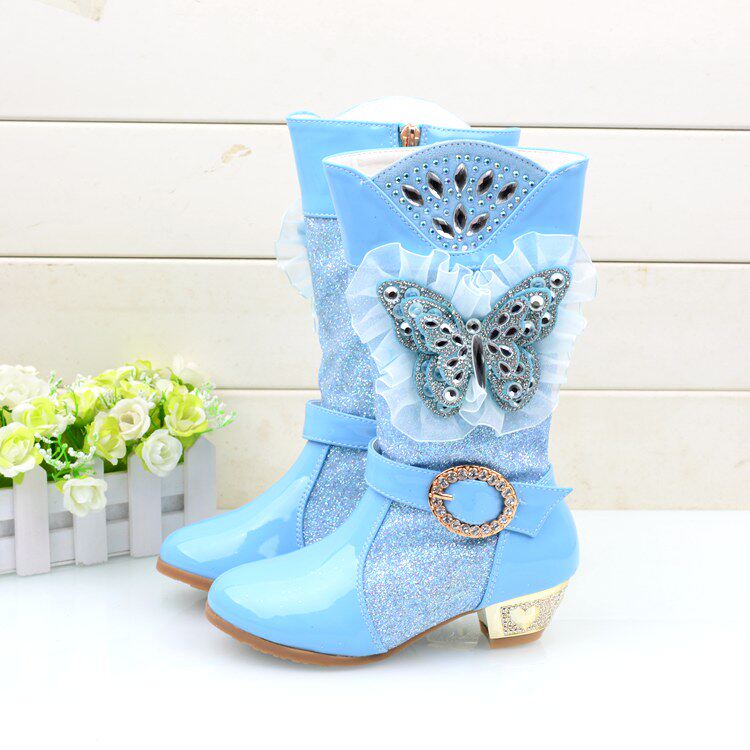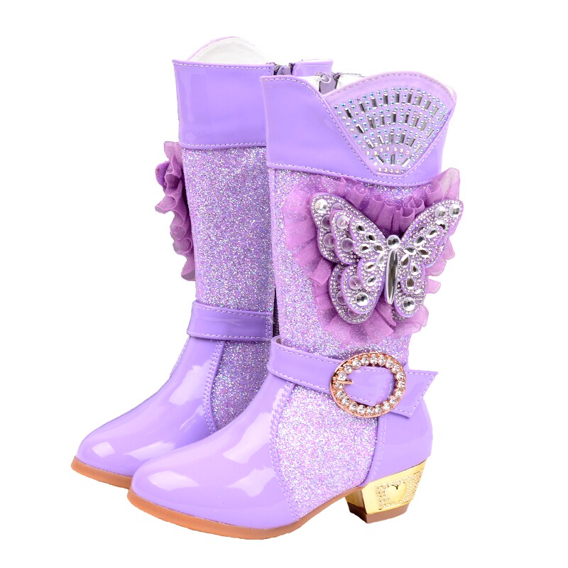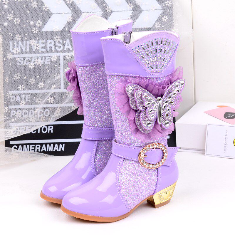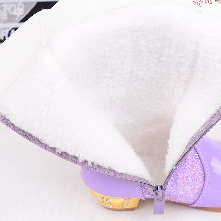 Зимние детские блестящие ботинки, высокие флисовые высокие сапоги для принцессы, 2023, в корейском стиле