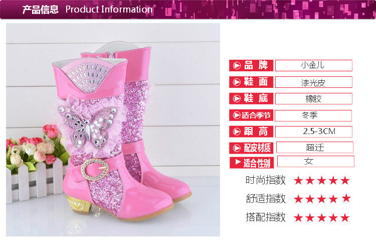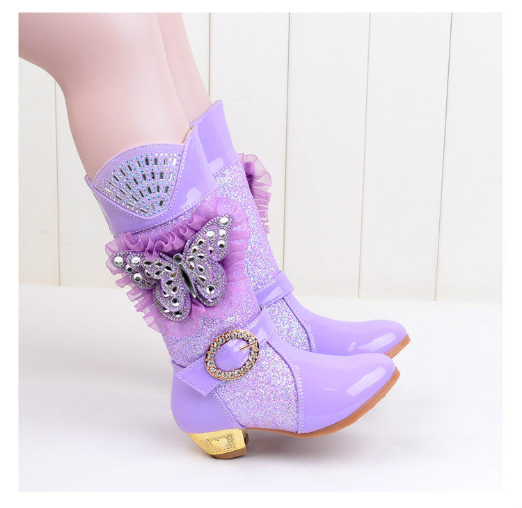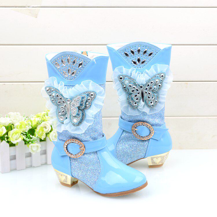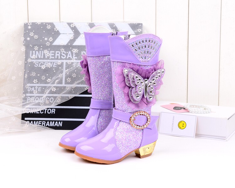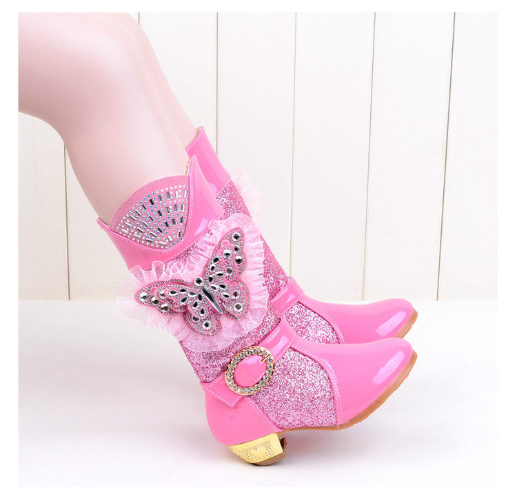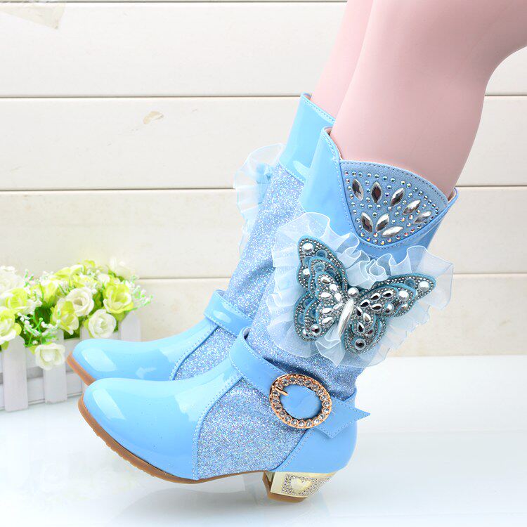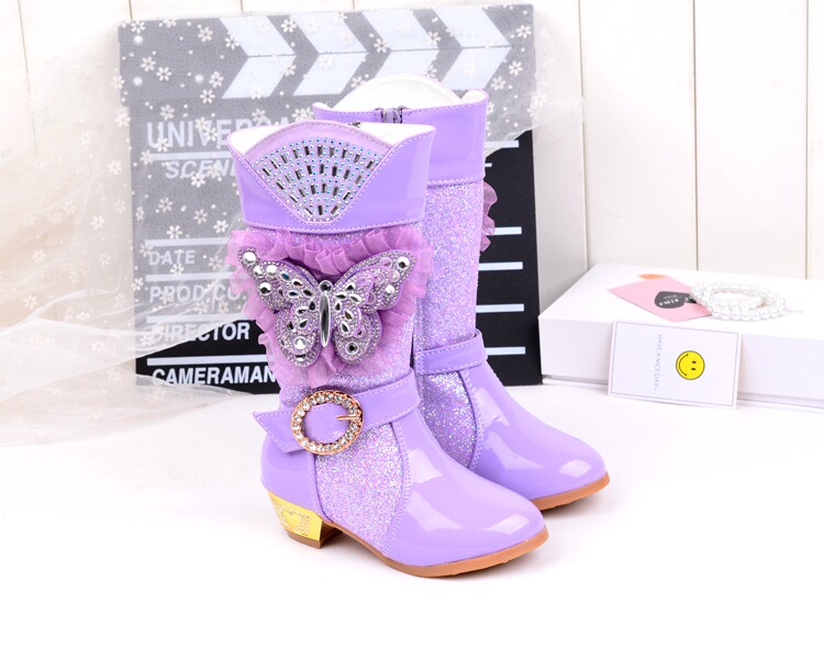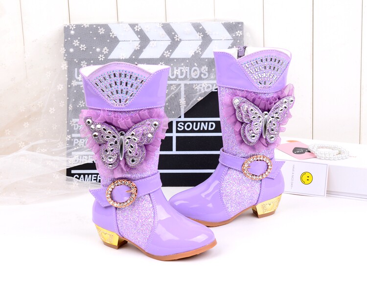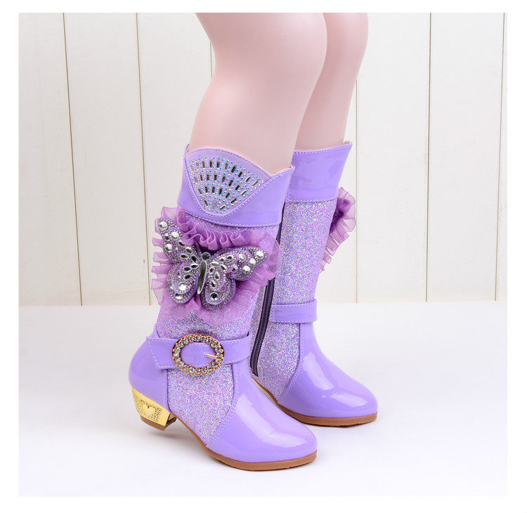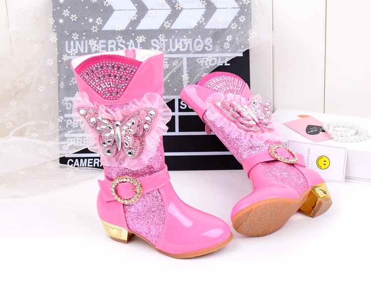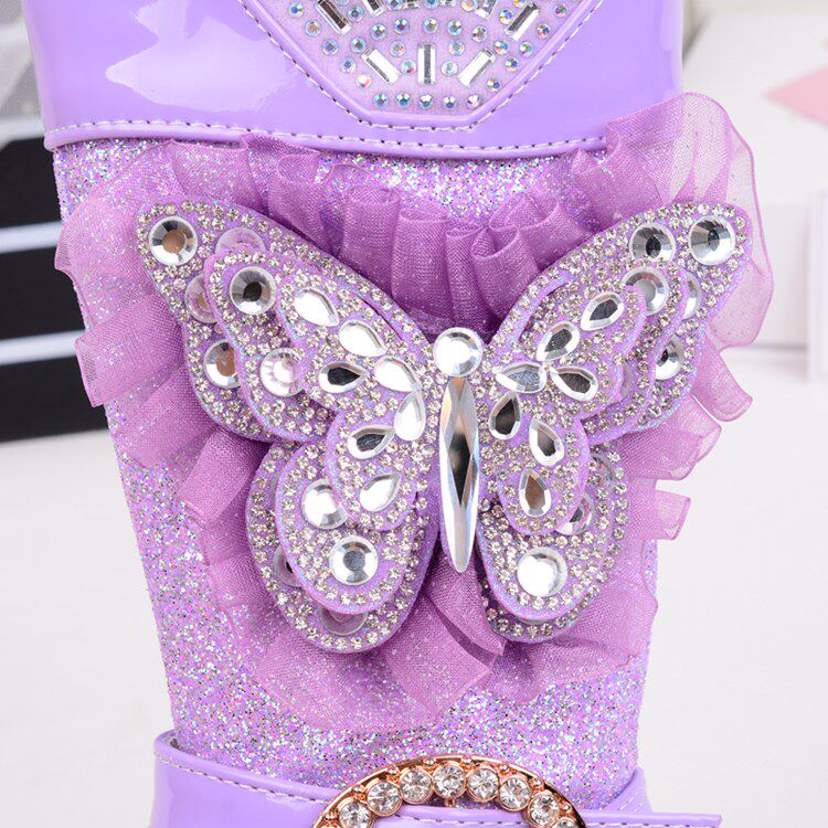 Зимние детские блестящие ботинки, высокие флисовые высокие сапоги для принцессы, 2023, в корейском стиле