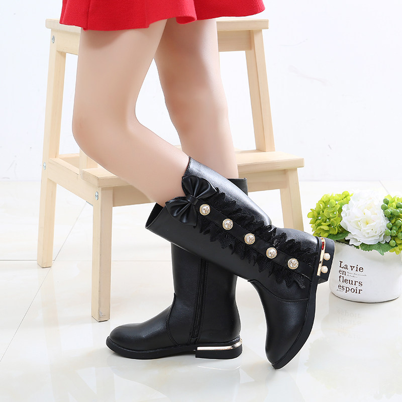 Зимние модные ботинки, детские флисовые высокие сапоги для принцессы, коллекция 2023, в корейском стиле