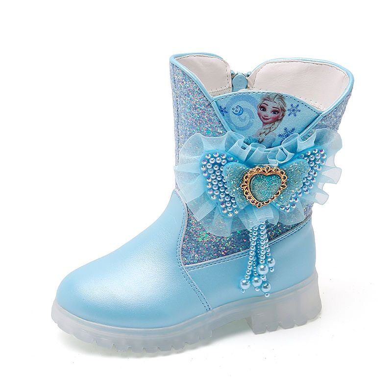 Демисезонные флисовые детские ботинки на каблуке, зимние сапоги для принцессы, средней длины, «Холодное сердце»