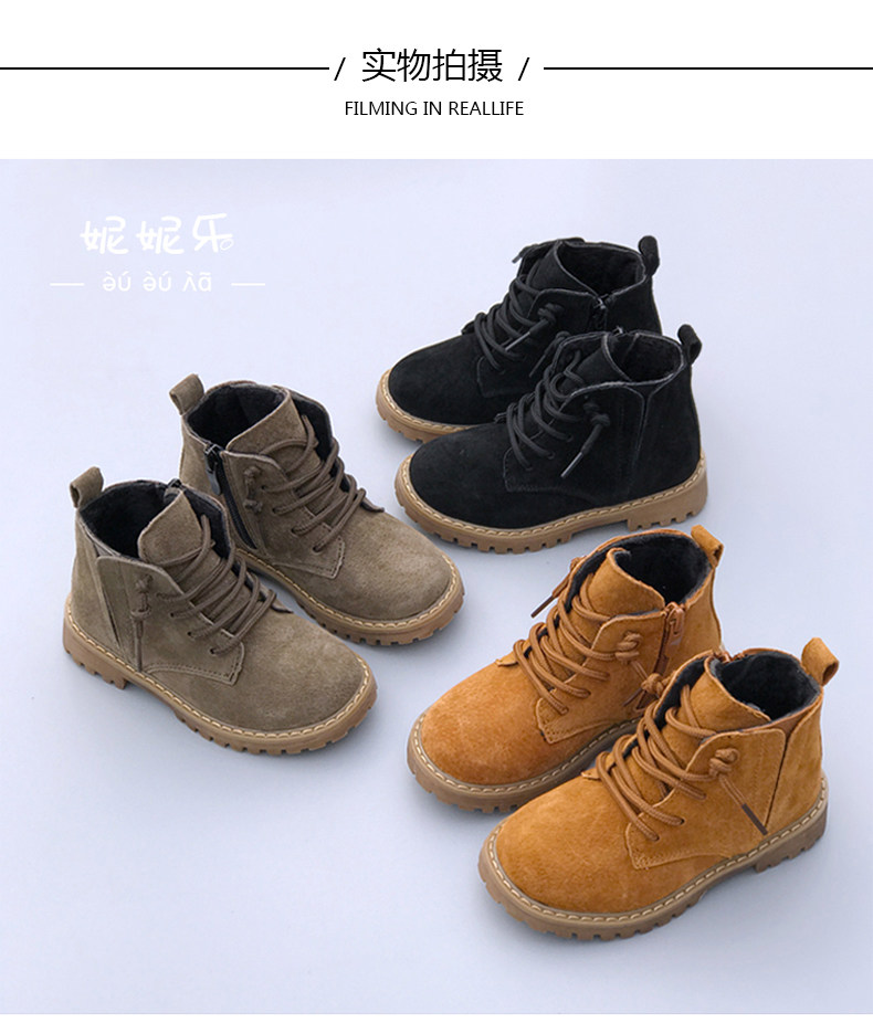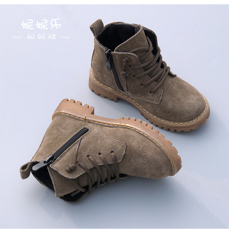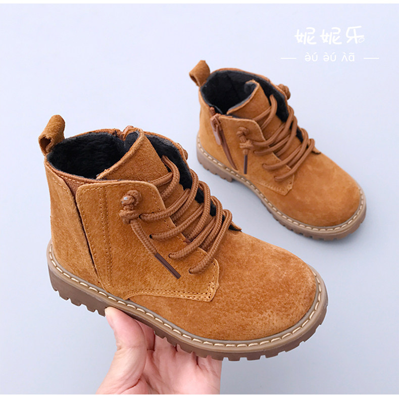 Martens, детские ботинки для мальчиков, демисезонные флисовые короткие сапоги, в корейском стиле, из натуральной кожи