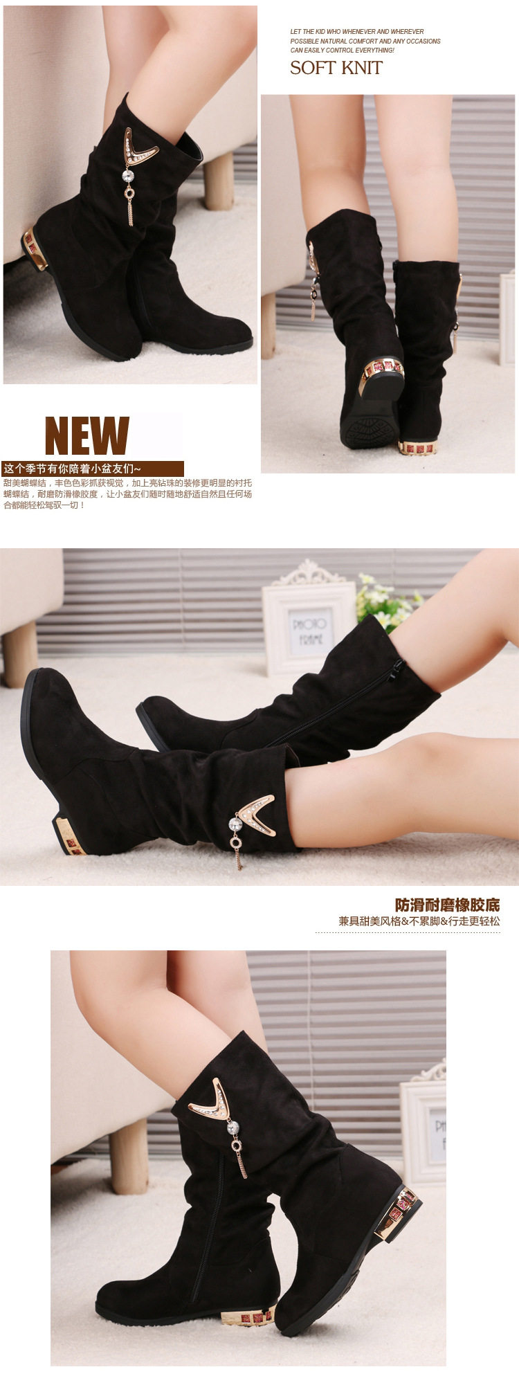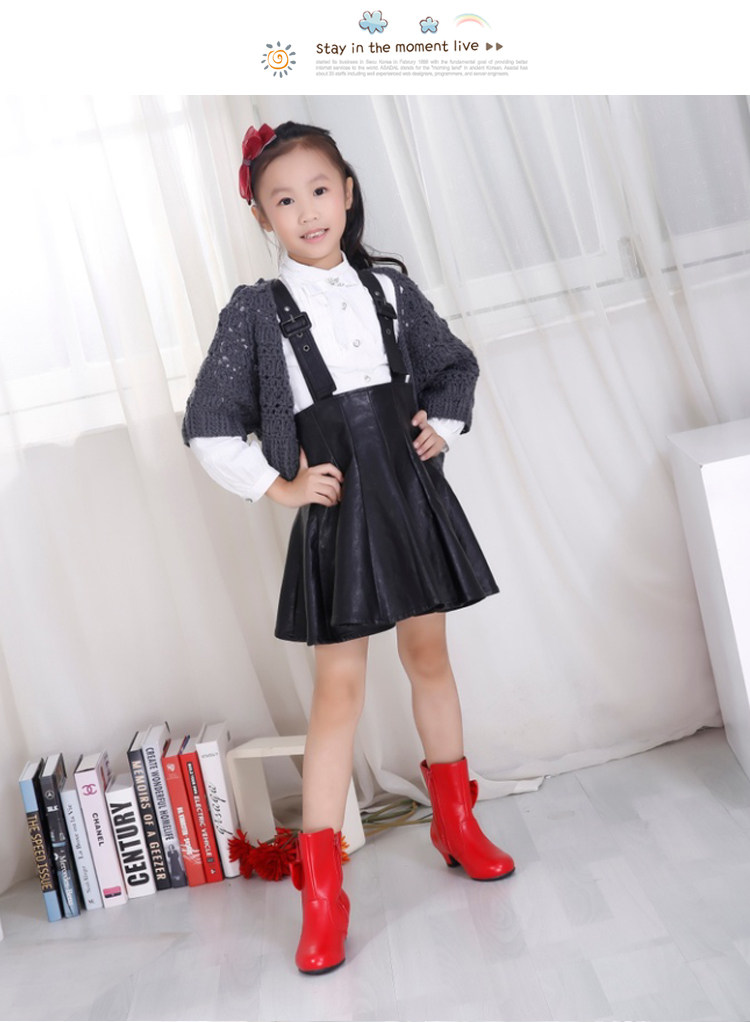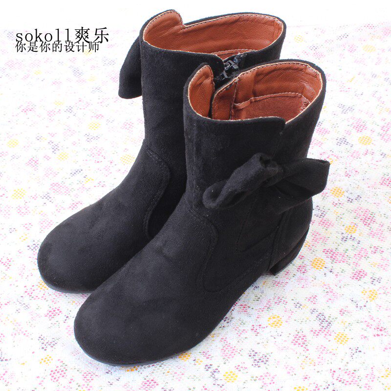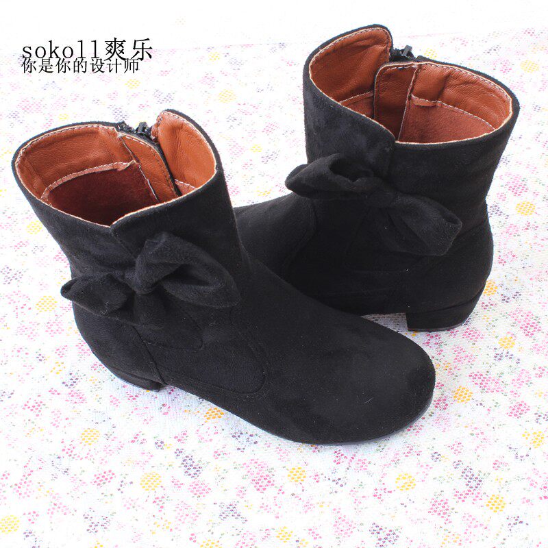 Зимние флисовые ботинки для принцессы, высокие детские черные сапоги, в корейском стиле, коллекция 2021, средней длины
