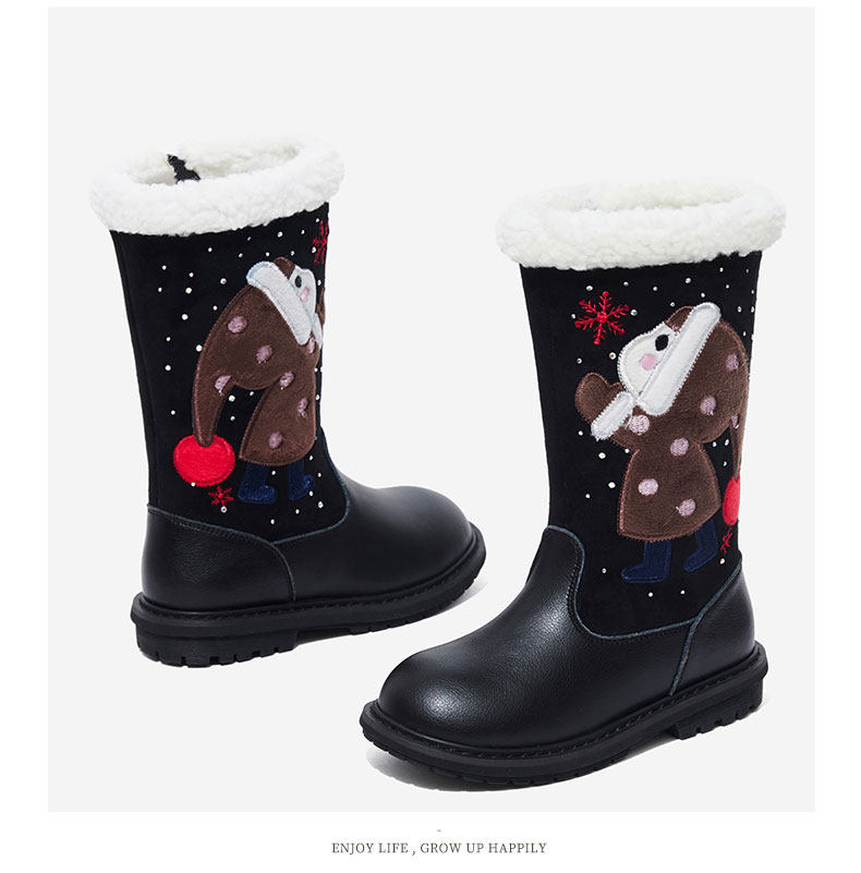Зимние ботинки для принцессы, флисовые детские высокие сапоги, из натуральной кожи, 2020, подходит для подростков