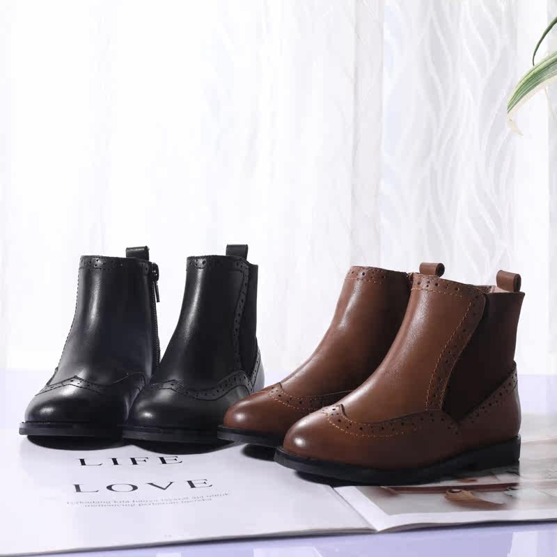 Martens, детские зимние кожаные ботинки в английском стиле, флисовые короткие сапоги для мальчиков, 2019, в британском стиле