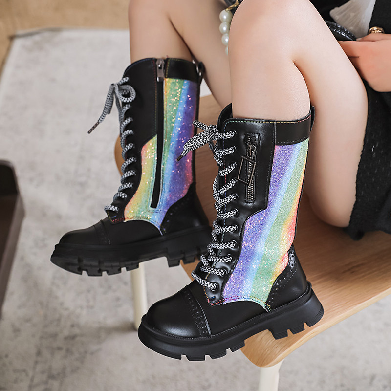 Блестки для ногтей, детские ботинки для принцессы, высокие высокие сапоги