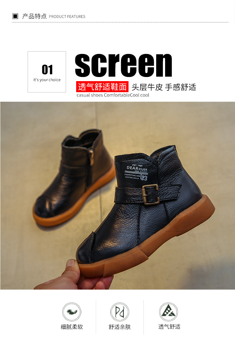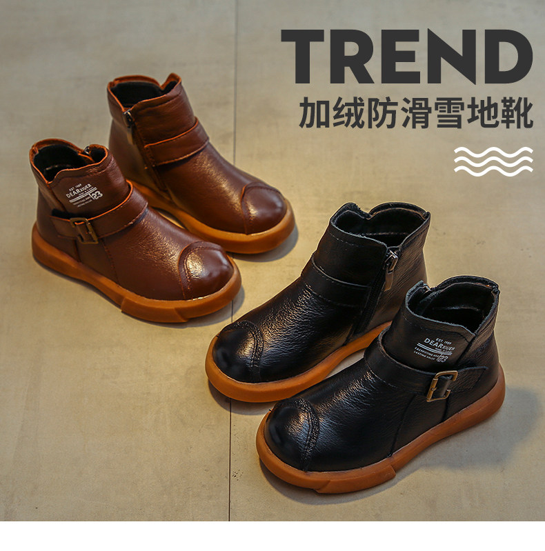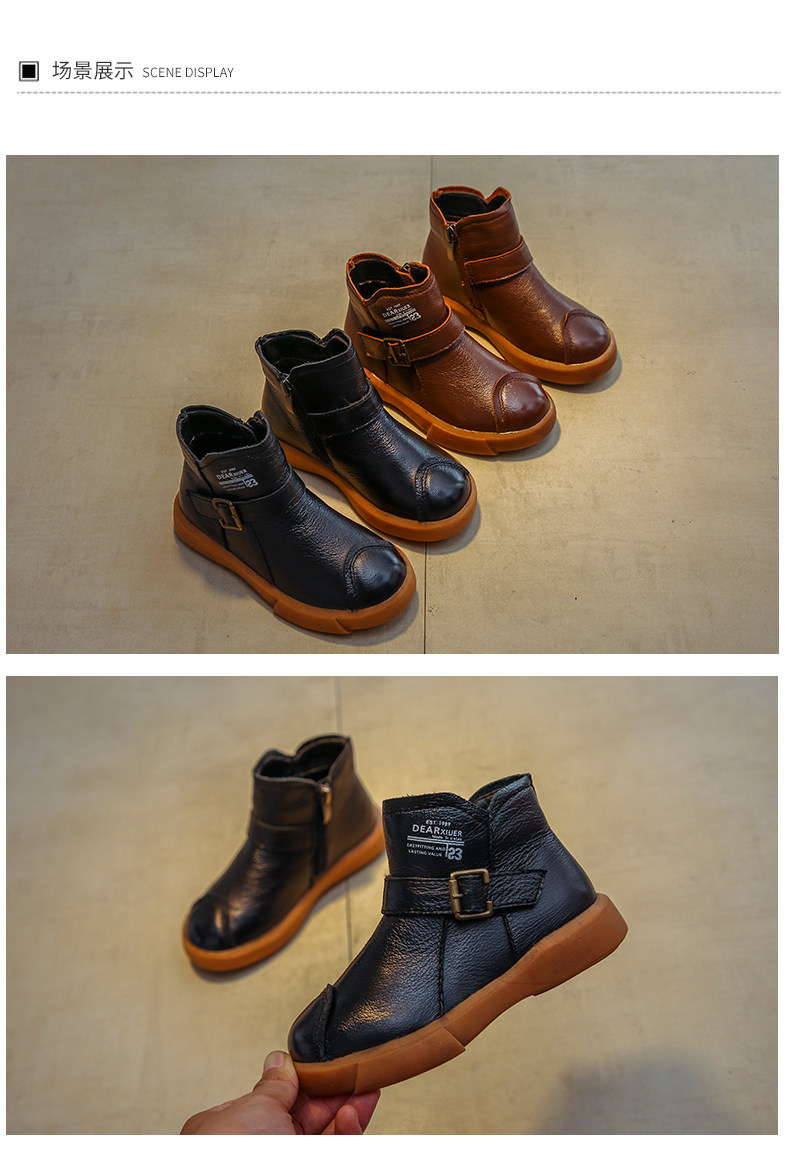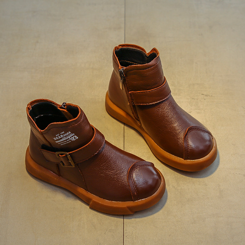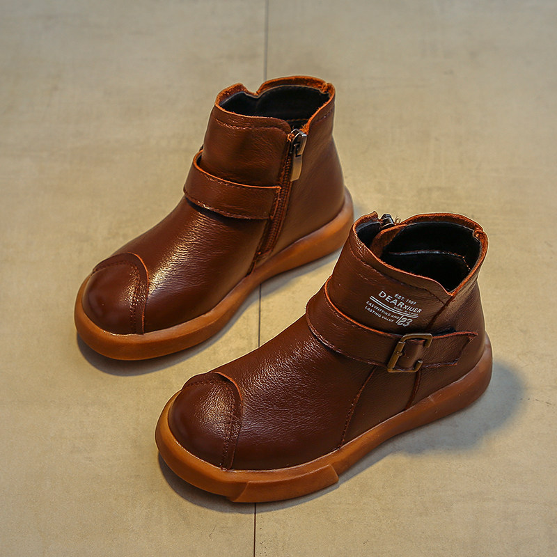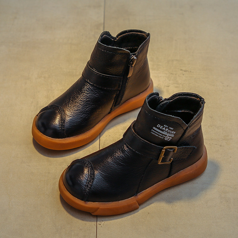 Martens, демисезонные флисовые детские короткие сапоги для мальчиков, из натуральной кожи