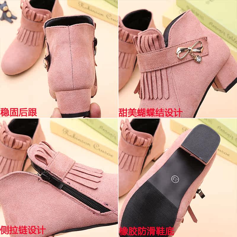 Детские ботинки, трендовые короткие сапоги, флисовая обувь для принцессы, 2019, в западном стиле, подходит для подростков