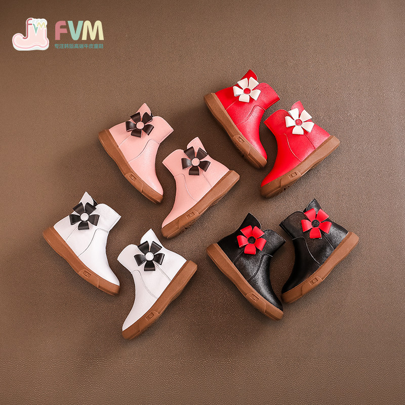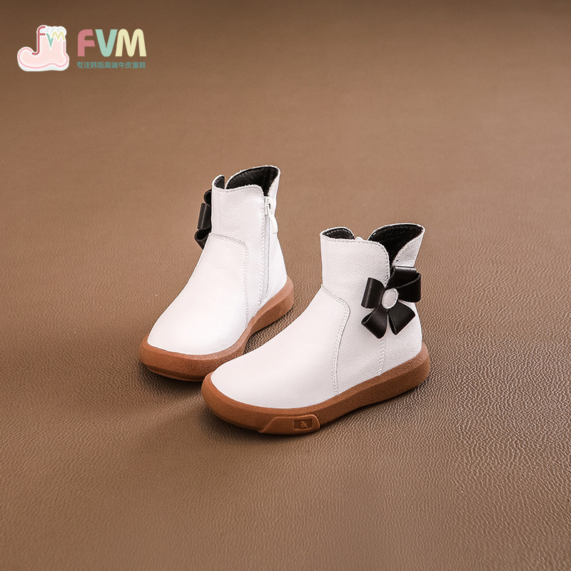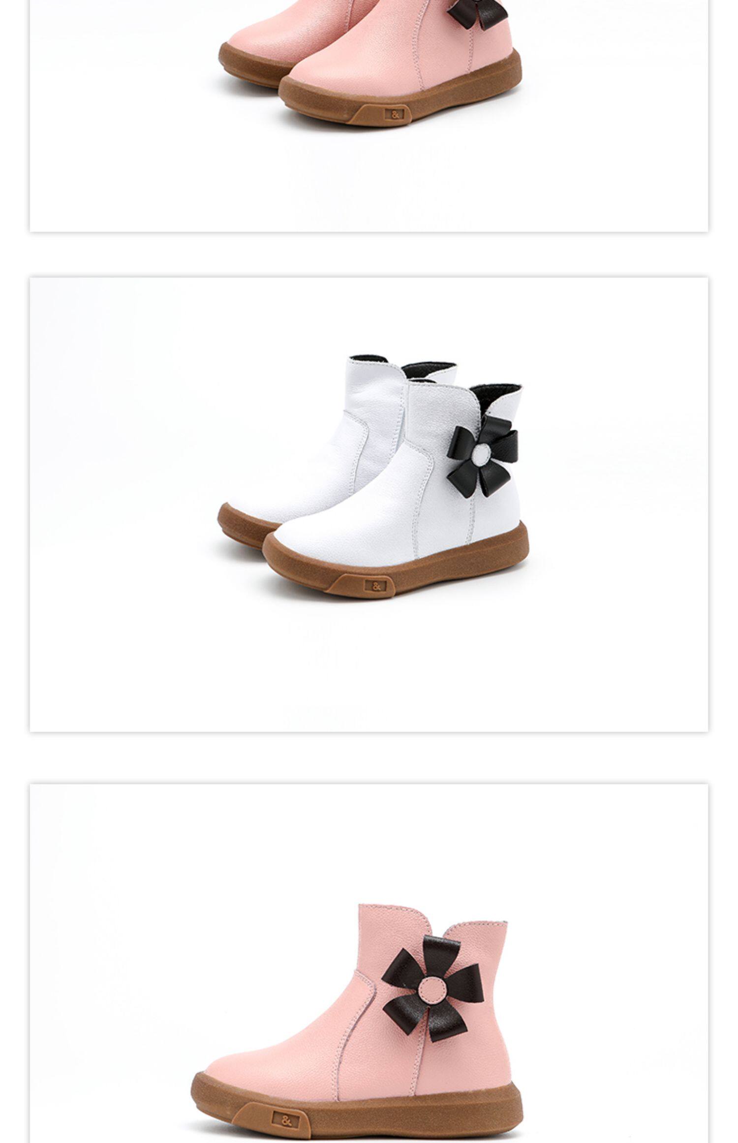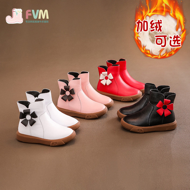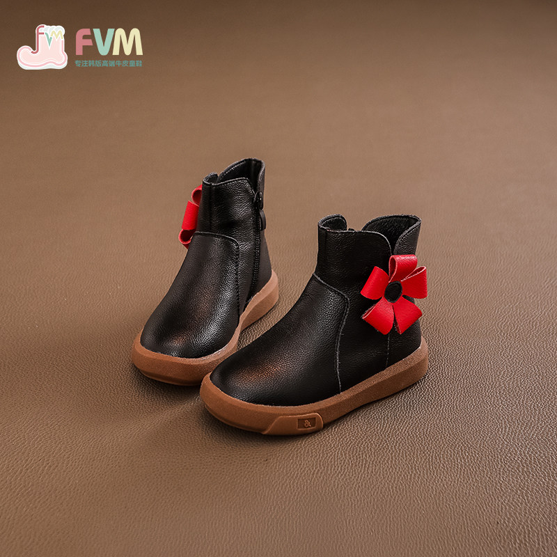 Детские демисезонные короткие сапоги, флисовые зимние ботинки для принцессы, из натуральной кожи, в западном стиле