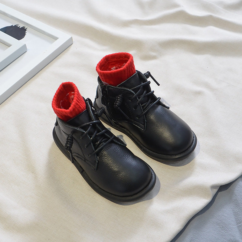 Martens, детские ботинки подходит для мужчин и женщин, флисовые нескользящие зимние сапоги, из натуральной кожи, в корейском стиле, мягкая подошва