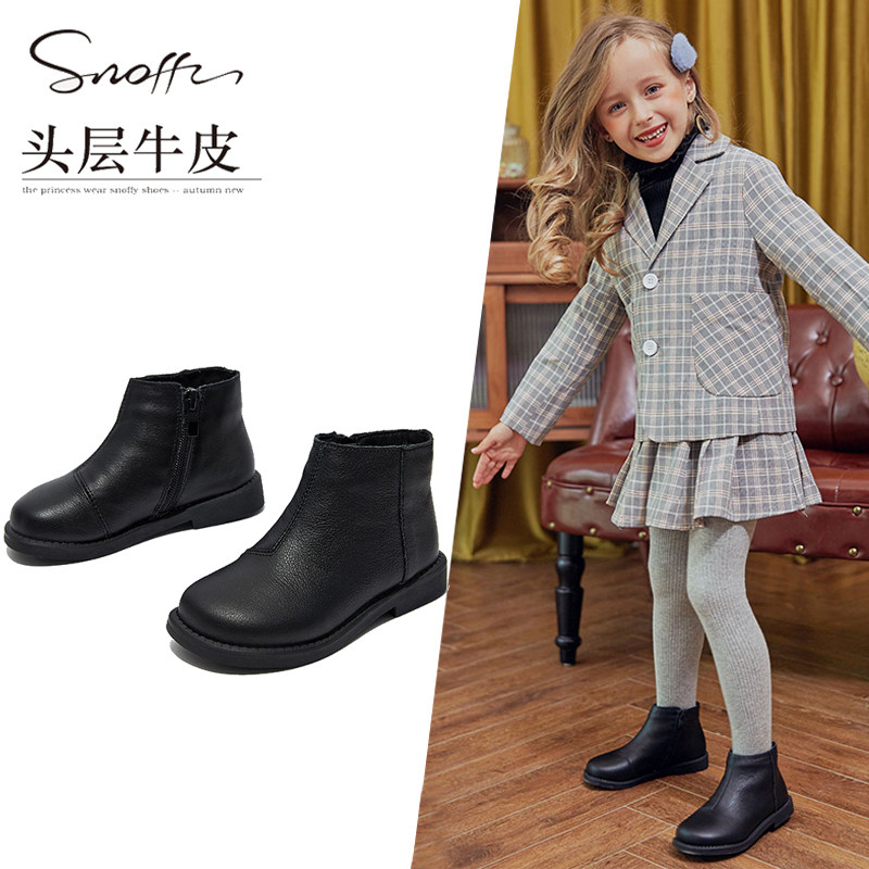 Детский весенний флисовый наряд маленькой принцессы для кожаной обуви, короткие сапоги, ботинки, из натуральной кожи, коллекция 2022, в западном стиле