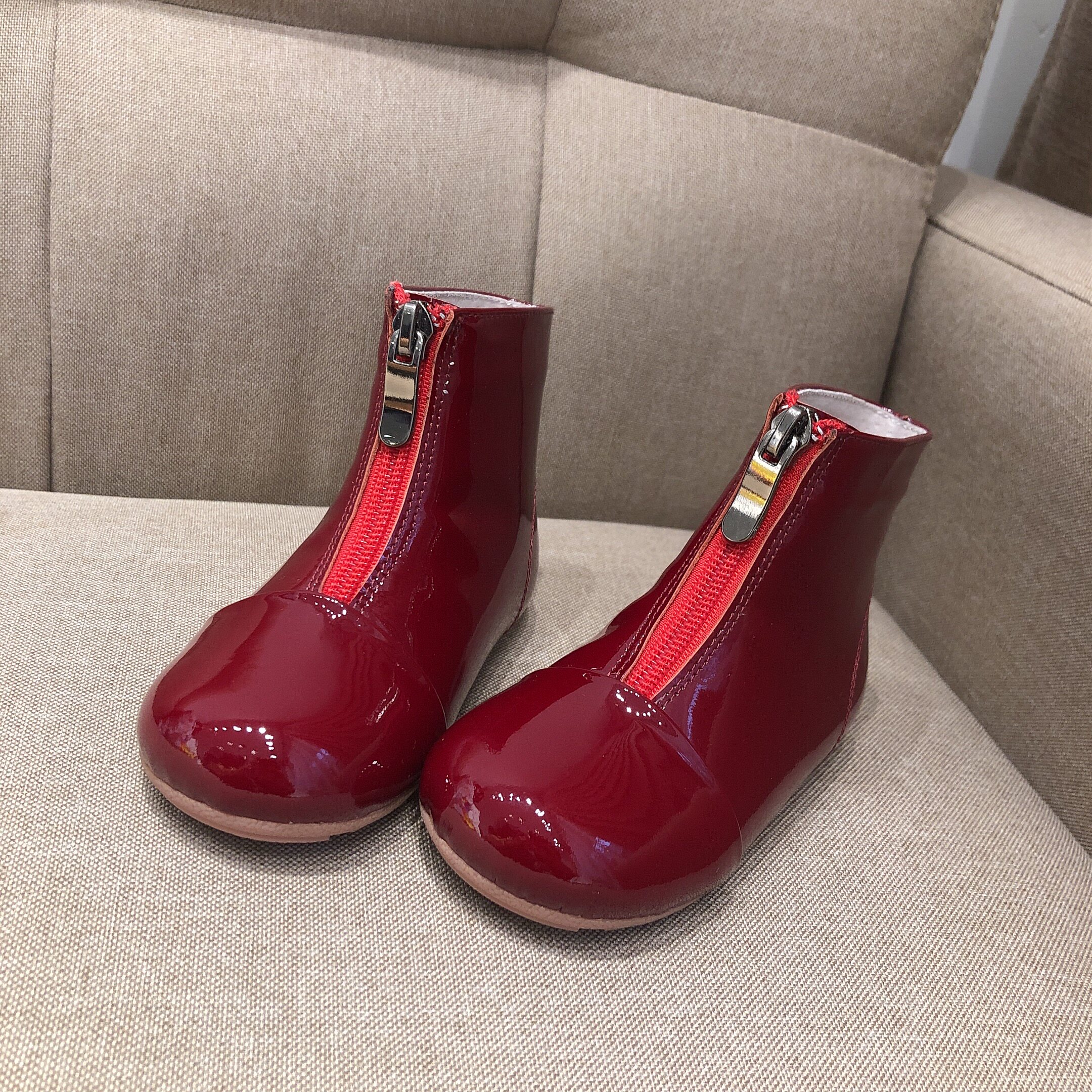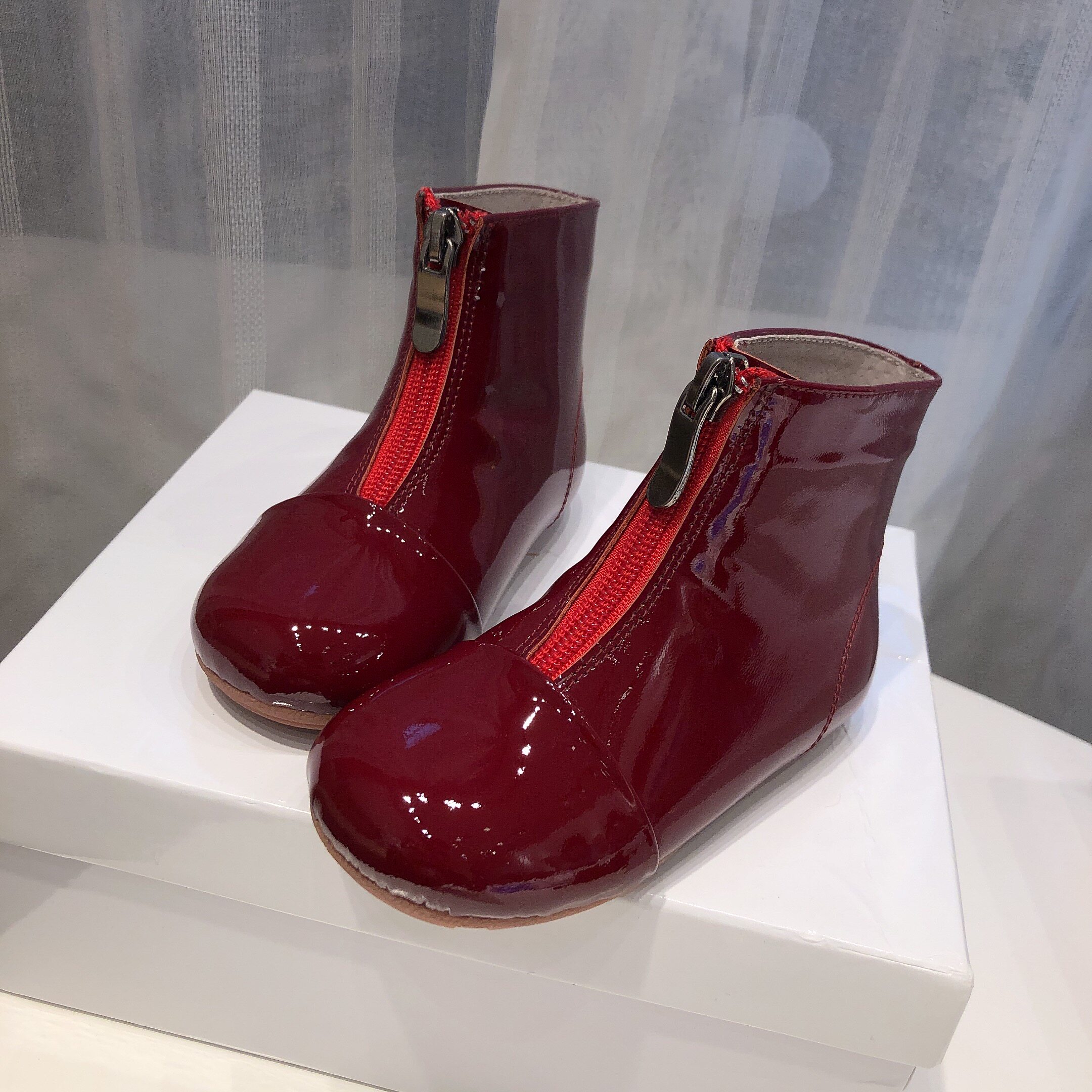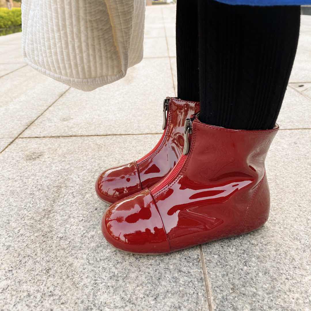 Martens, детские демисезонные бордовые сапоги в английском стиле, ботинки, из натуральной кожи, средней длины