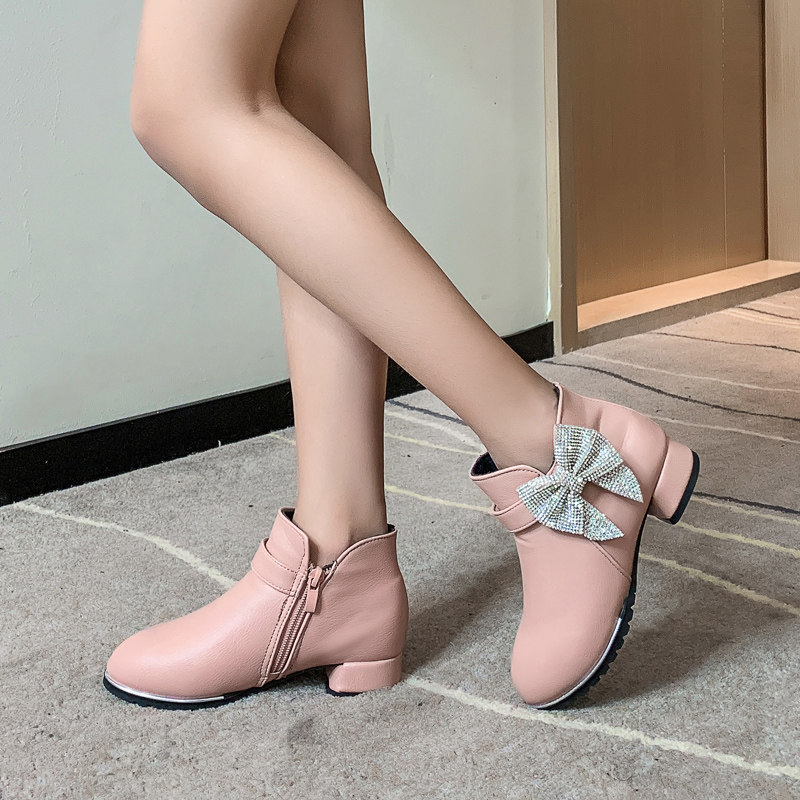 Martens, демисезонные детские ботинки, флисовые короткие сапоги для принцессы на высоком каблуке, 2020, подходит для подростков