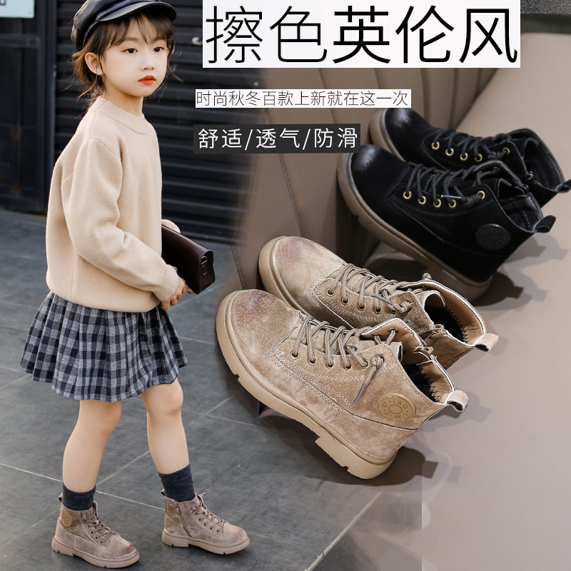 Martens, демисезонные детские короткие сапоги для мальчиков в английском стиле для принцессы, из натуральной кожи, 2019, подходит для подростков, в британском стиле