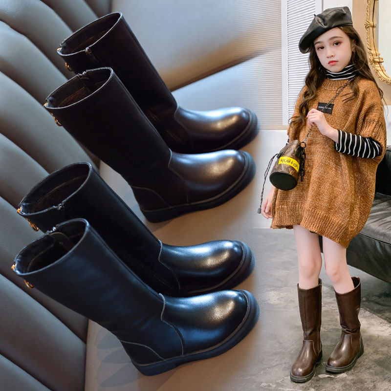 Ботинки, зимние флисовые детские универсальные высокие сапоги, коллекция 2023, подходит для подростков