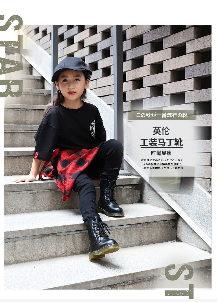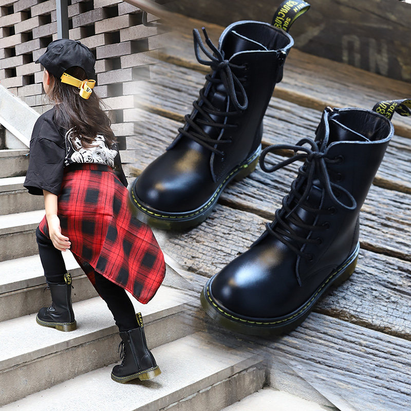 Martens, детские короткие сапоги в английском стиле, черные ботинки для мальчиков, обувь, из натуральной кожи, в британском стиле