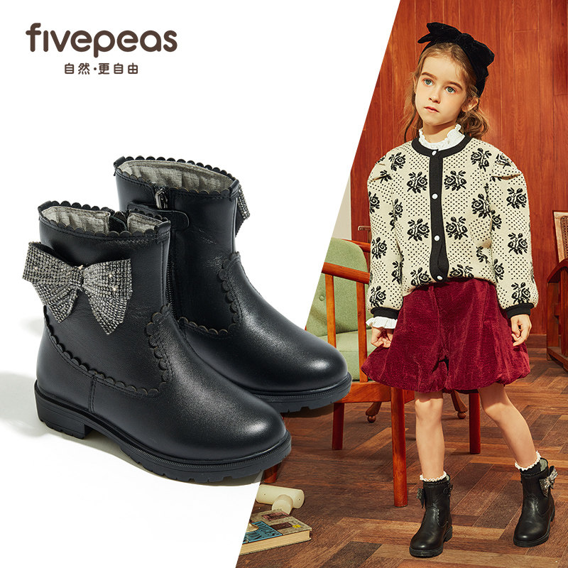 Martens, ботинки для принцессы, детские зимние флисовые сапоги с бантиком, подходит для подростков, из натуральной кожи