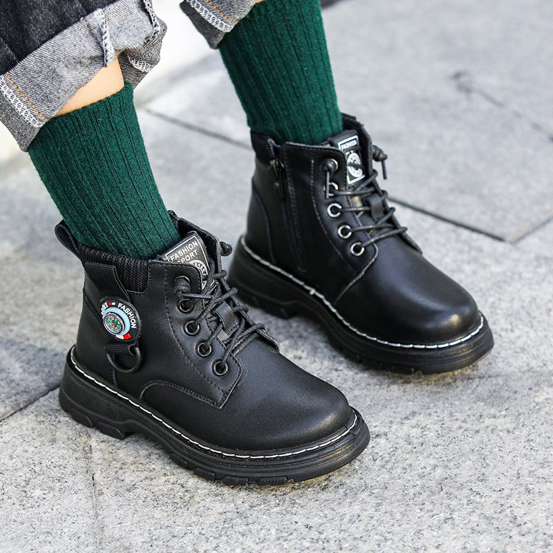 Martens, черные детские ботинки для мальчиков в английском стиле, короткие сапоги, модель весна/осень 2021 года, осенние, в британском стиле, из натуральной кожи, подходит для подростков