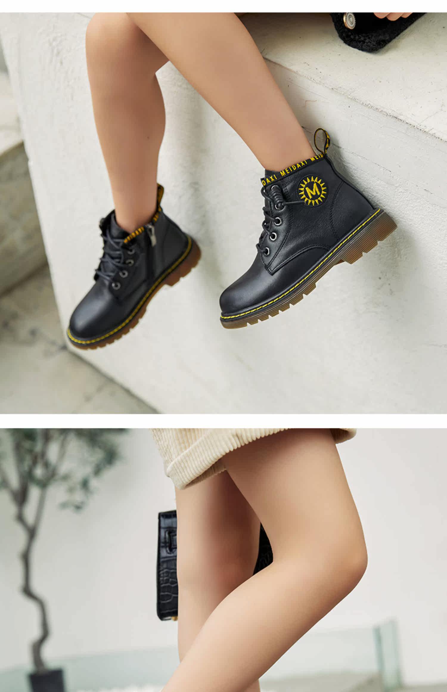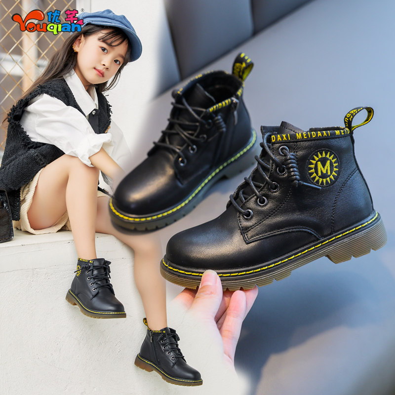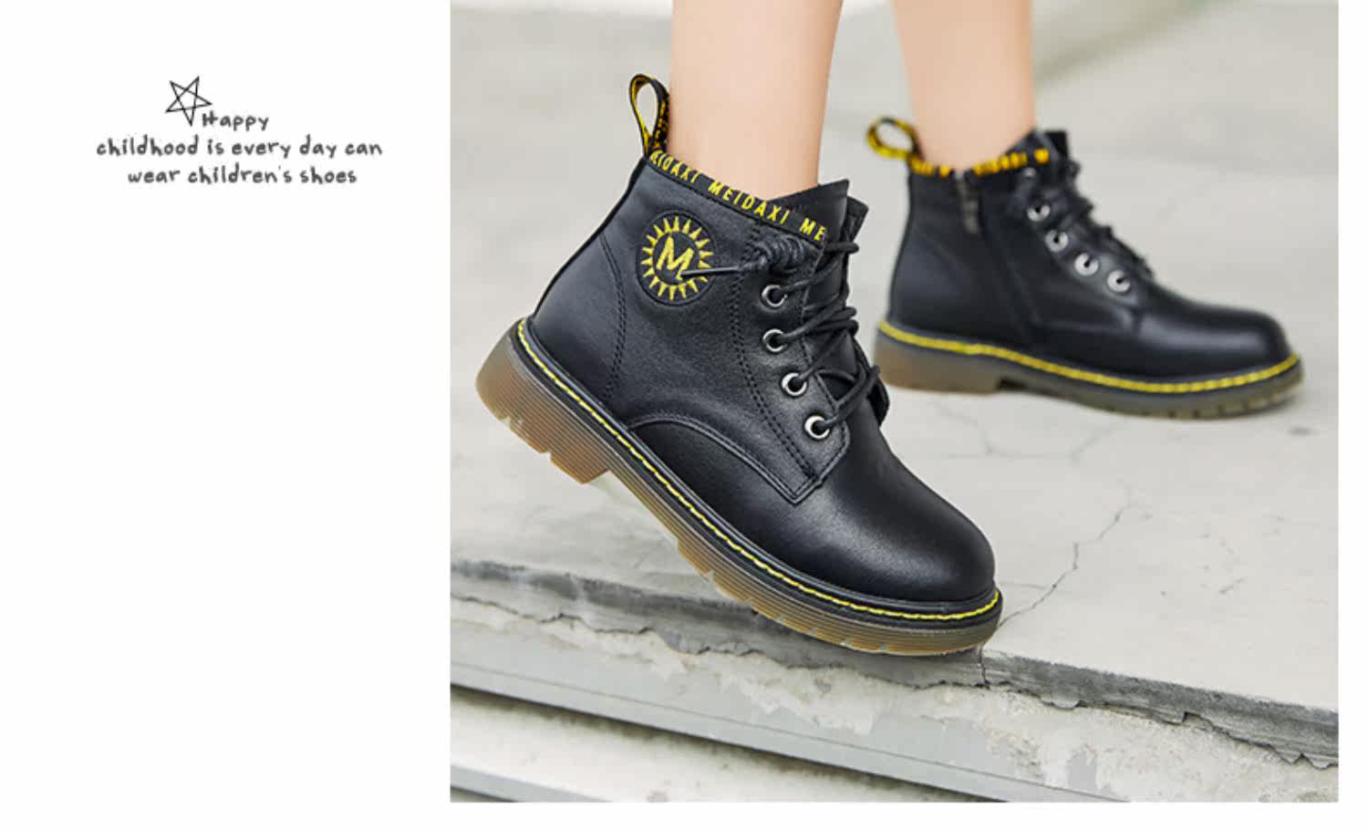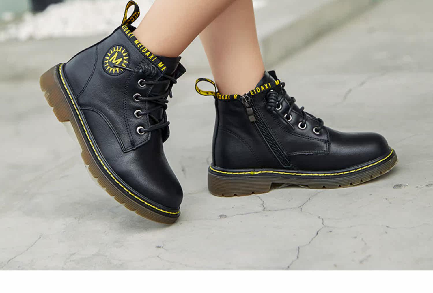 Martens, демисезонные ботинки, кожаные детские короткие сапоги в английском стиле для мальчиков, модель весна/осень 2020 года, тренд сезона, мягкая подошва, в британском стиле