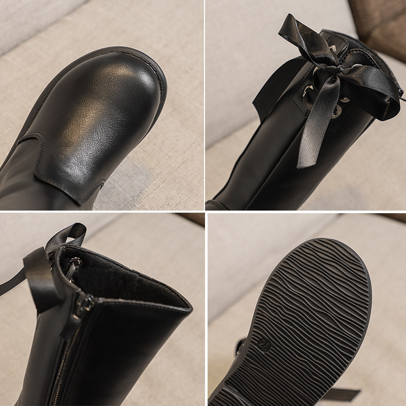 Детские высокие сапоги, демисезонные флисовые ботинки для принцессы, в корейском стиле