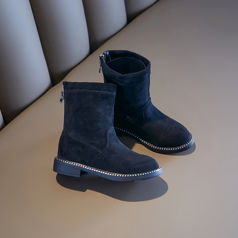 Утепленные универсальные замшевые сапоги с молнией для принцессы, 2022, осенние, тренд сезона