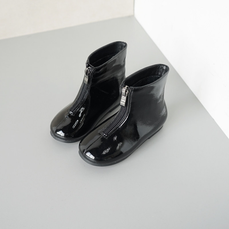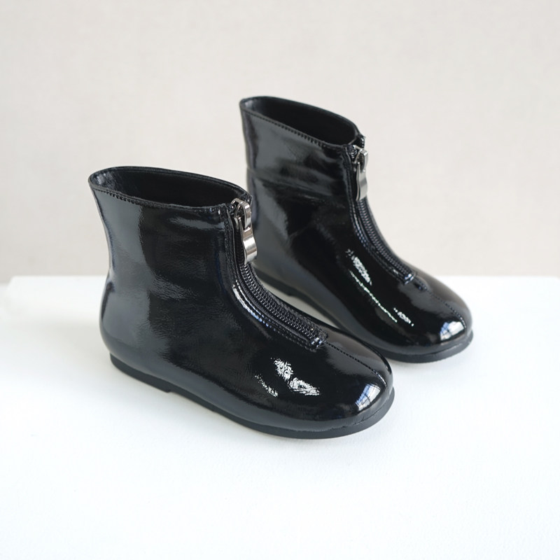 Детские короткие сапоги с молнией, модные глянцевые флисовые ботинки для принцессы, в корейском стиле, коллекция 2021