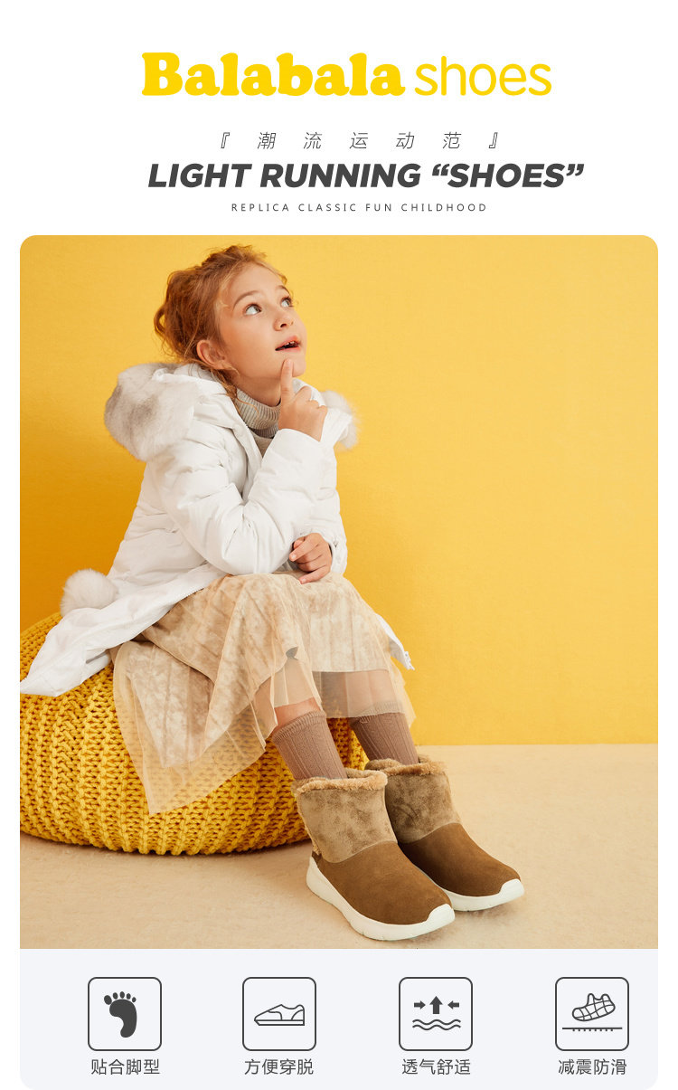 巴拉巴拉 Детские ботинки, зимние высокие флисовые удерживающие тепло сапоги для мальчиков, подходит для подростков