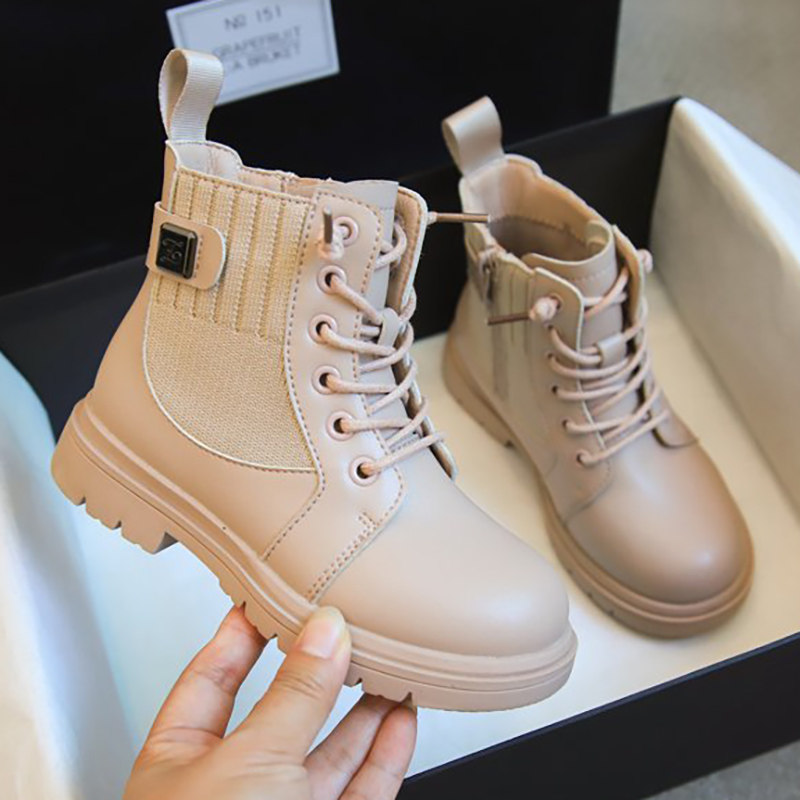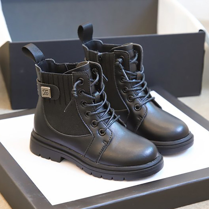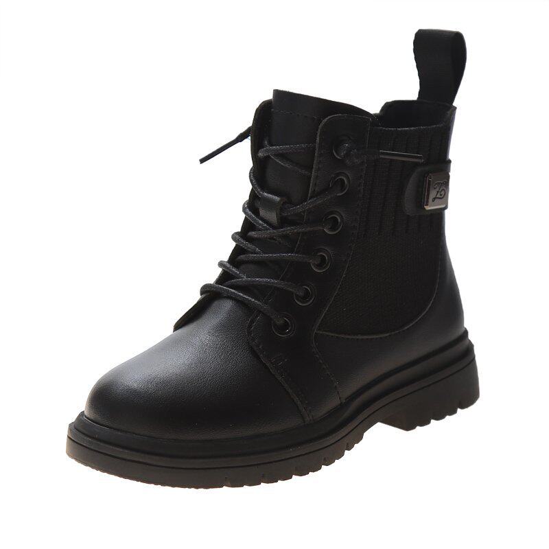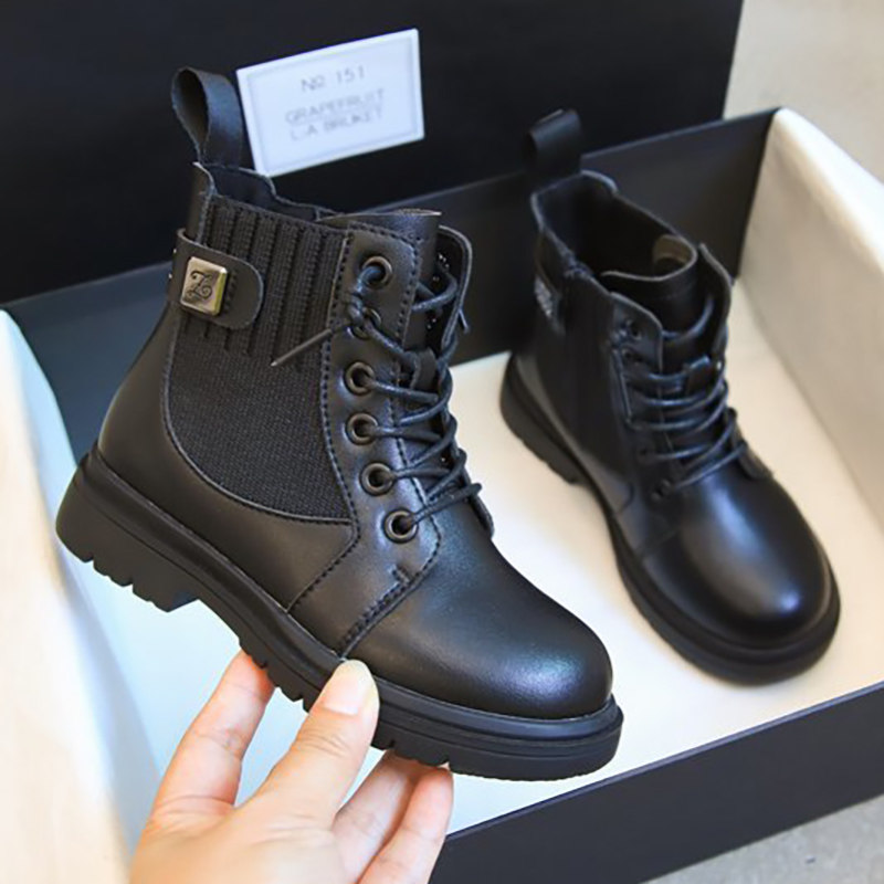 Martens, черные флисовые детские короткие сапоги в английском стиле, ботинки для принцессы, 2020, осенние, тренд сезона, в британском стиле