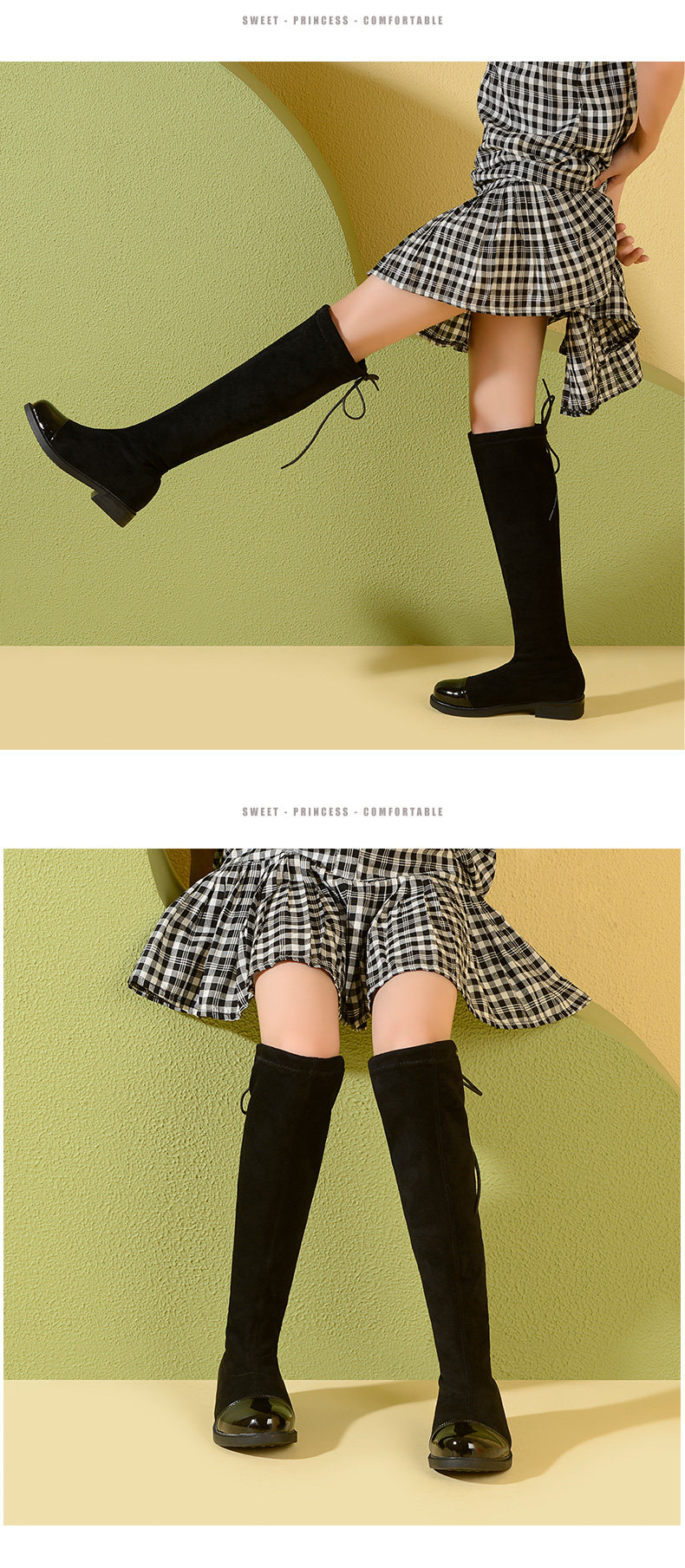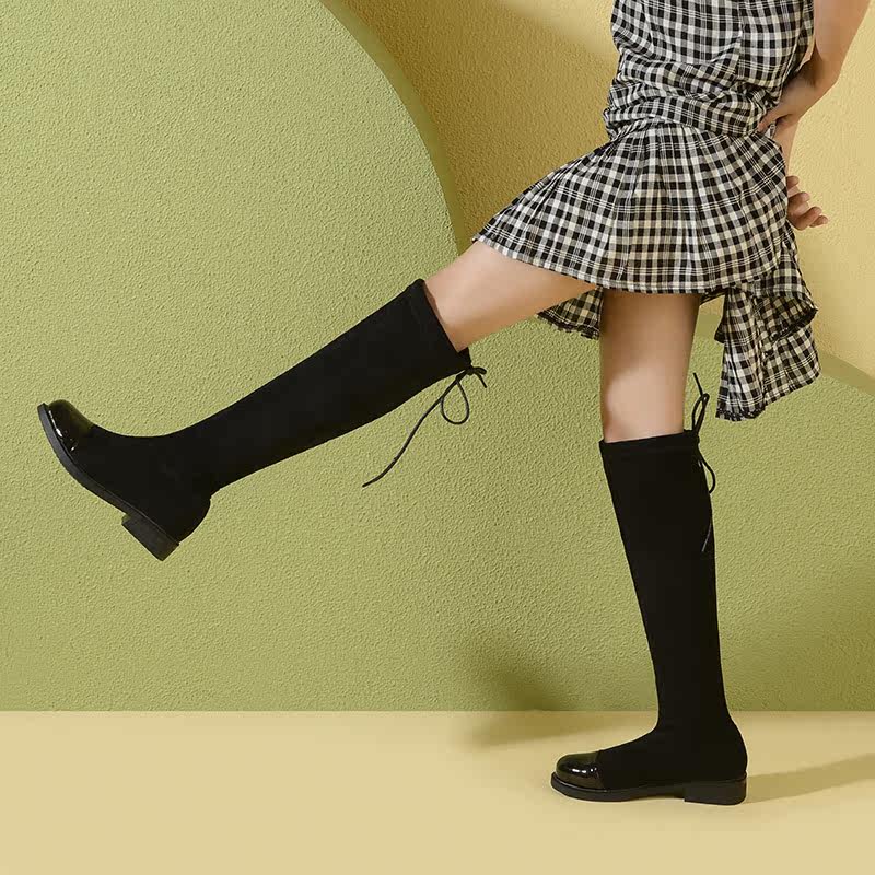 Демисезонные детские эластичные флисовые высокие сапоги для принцессы, 2020, подходит для подростков