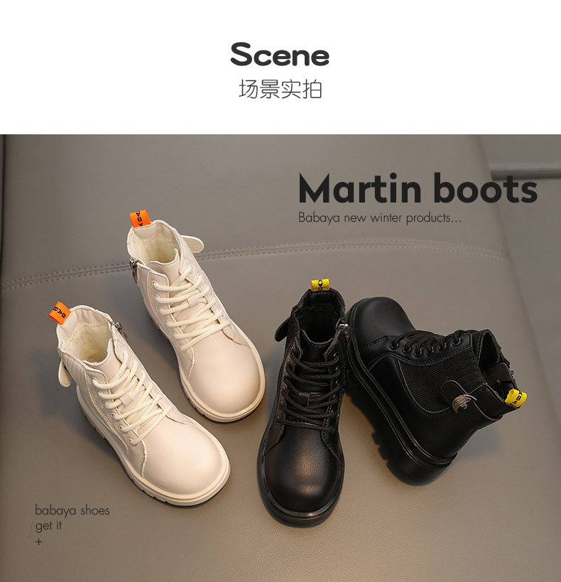 芭芭鸭 Martens, детские флисовые ботинки, демисезонные короткие сапоги для мальчиков, коллекция 2021