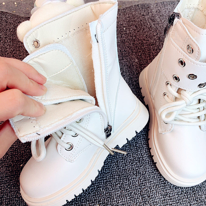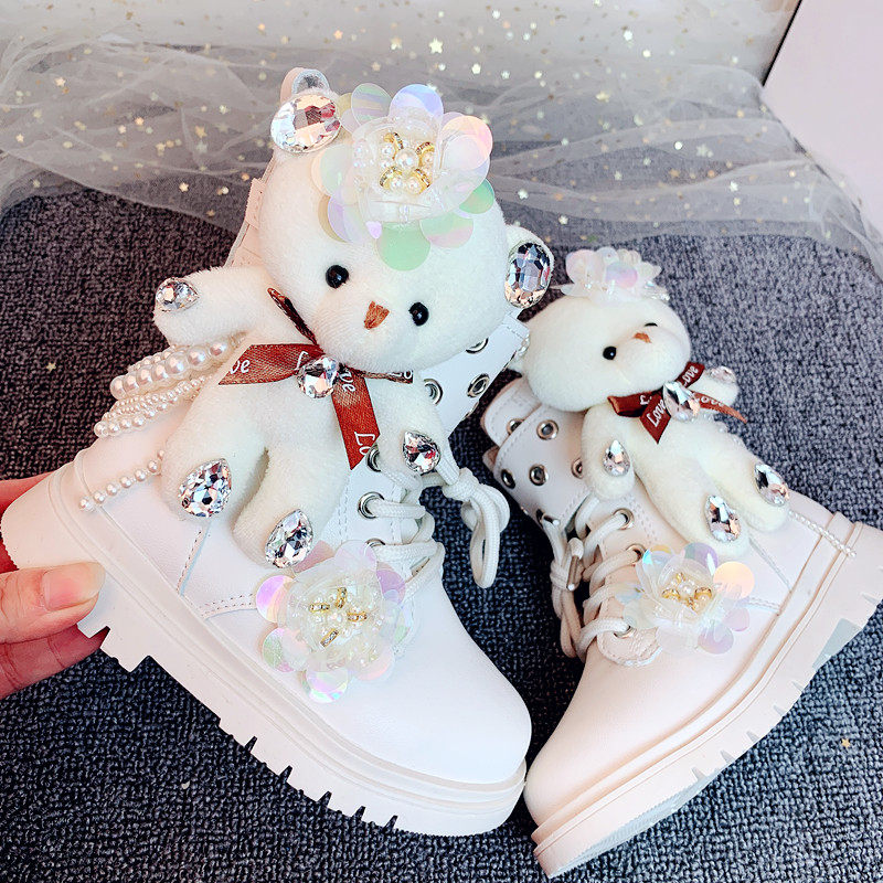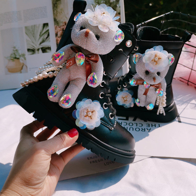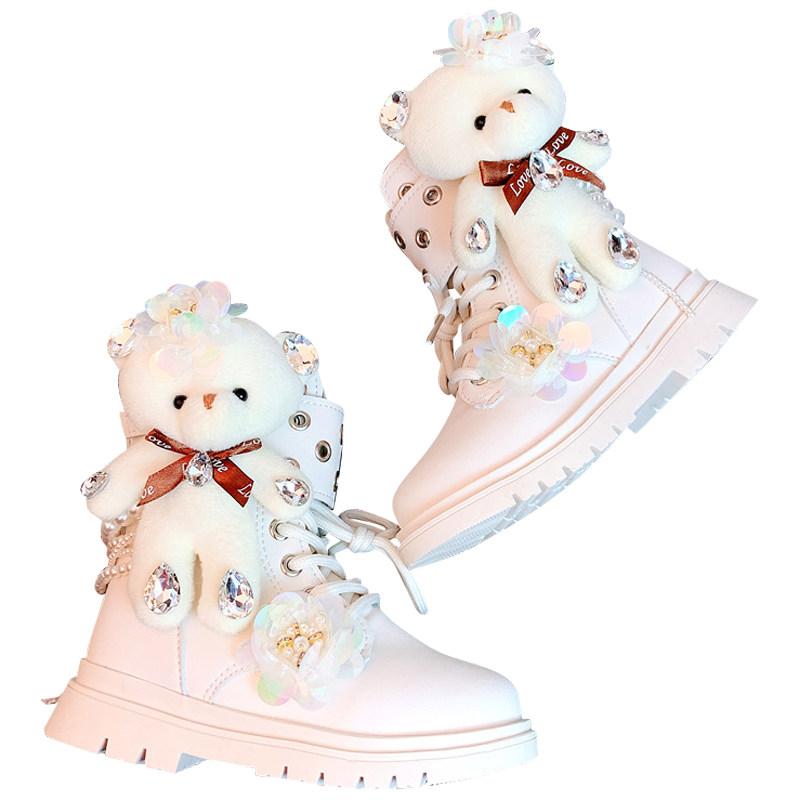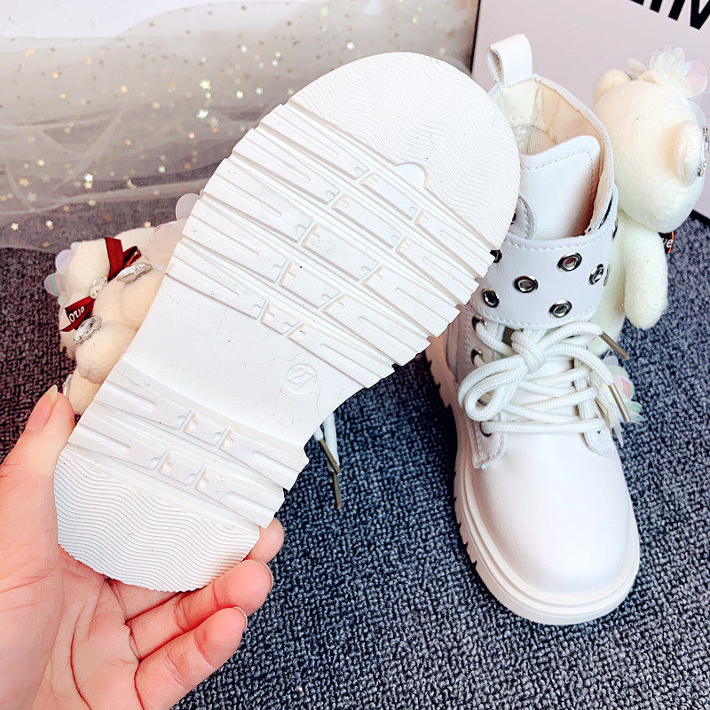 Martens, демисезонные флисовые мультяшные универсальные короткие сапоги для принцессы, обувь, с медвежатами, средней длины, в западном стиле