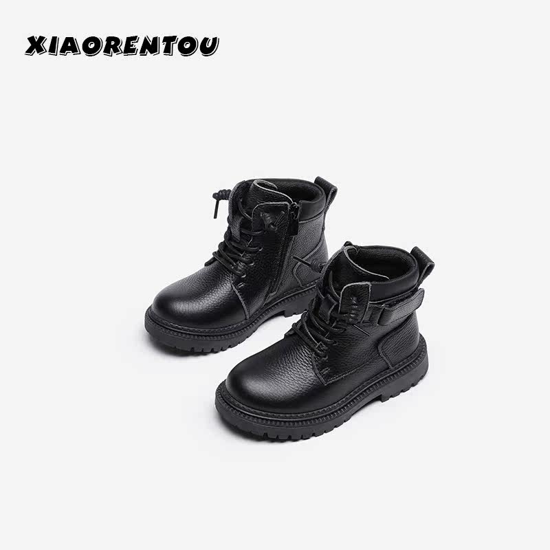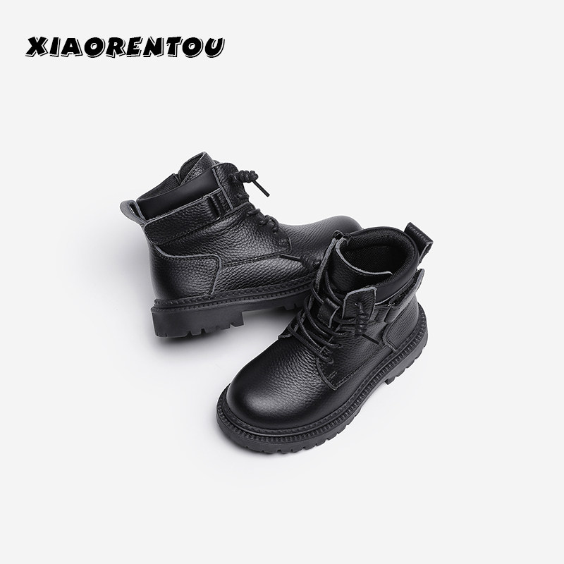 Martens, нескользящие детские демисезонные короткие сапоги для мальчиков, флисовые ботинки, из натуральной кожи, коллекция 2021, мягкая подошва, подходит для подростков
