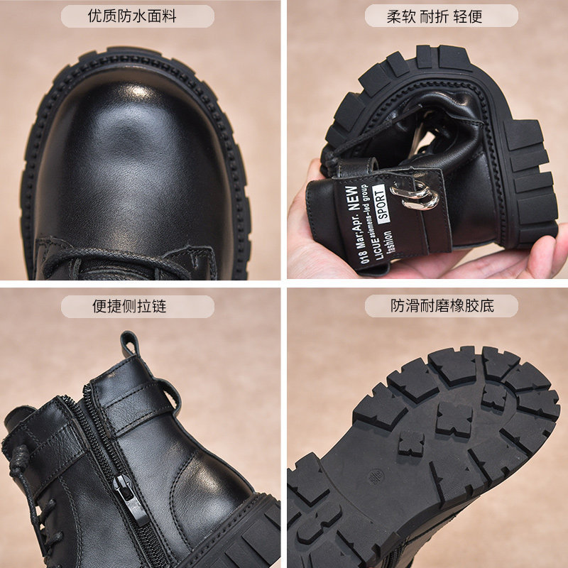 Martens, демисезонные детские флисовые короткие сапоги для мальчиков, коллекция 2022, из натуральной кожи