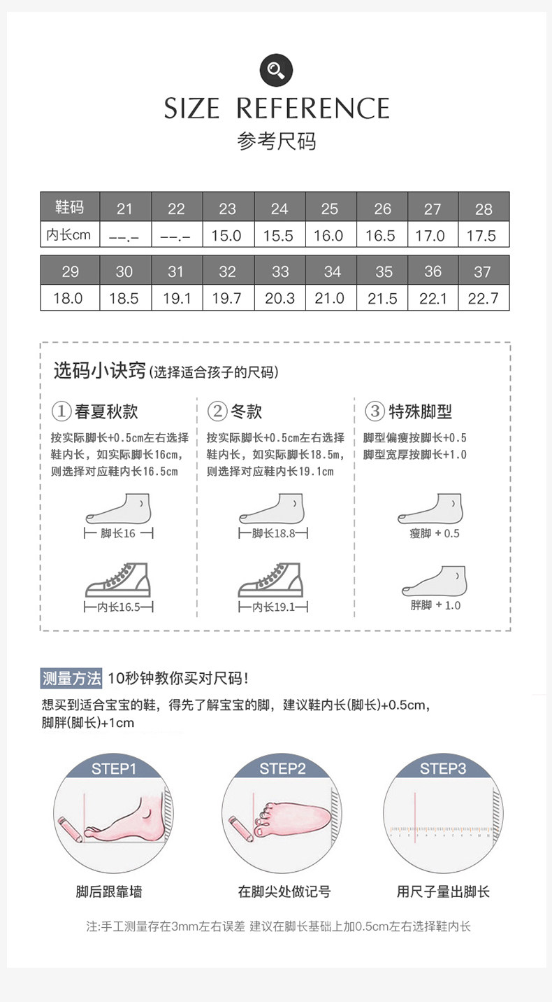 | Размер обуви: | 23 -ярд обуви 15 см в длину, 24 -ярд обуви 15,5 см в длину, 25 -Ярд обуви внутри 16 см., 26 -Яркие туфли внутри 16,5 см, Размер 27, внутренняя длина обуви 17см., 28 -Длина обуви для обуви 17,5 см, Размер 29, внутренняя длина обуви 18см., 30 ярдов обуви по длине 18,5 см, 31 ярд длина обуви 19,1 см., 32, 19.7см, 33 -ярд обуви внутри 20,3 см, 34 -Длина обуви для обуви 20,9 см., 35 -Длина обуви для обуви 21,5 см |
