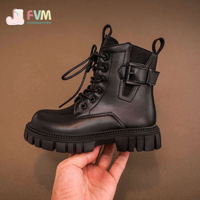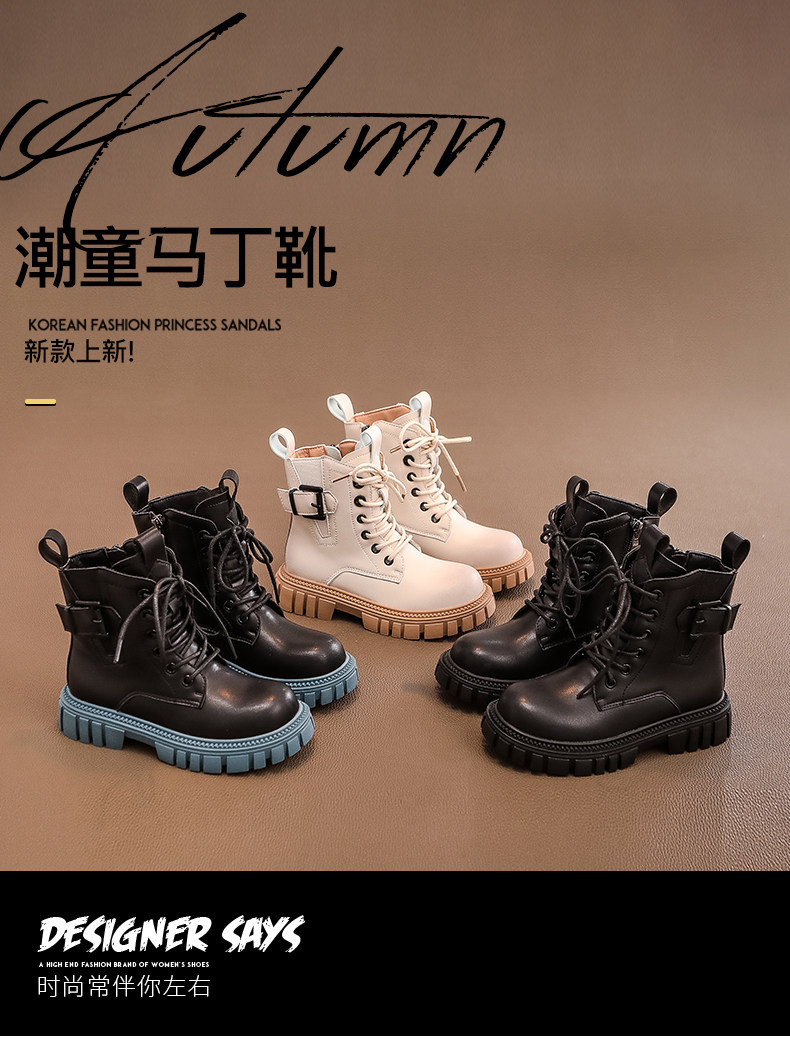 Martens, детские короткие сапоги, весенние демисезонные ботинки для черной кожи, коллекция 2022, осенние