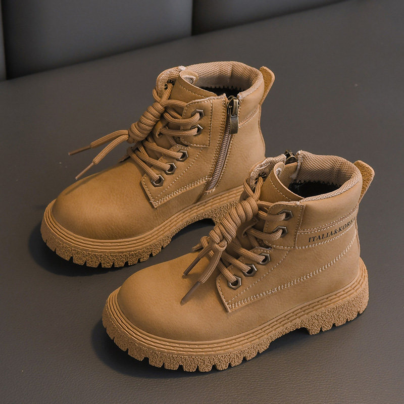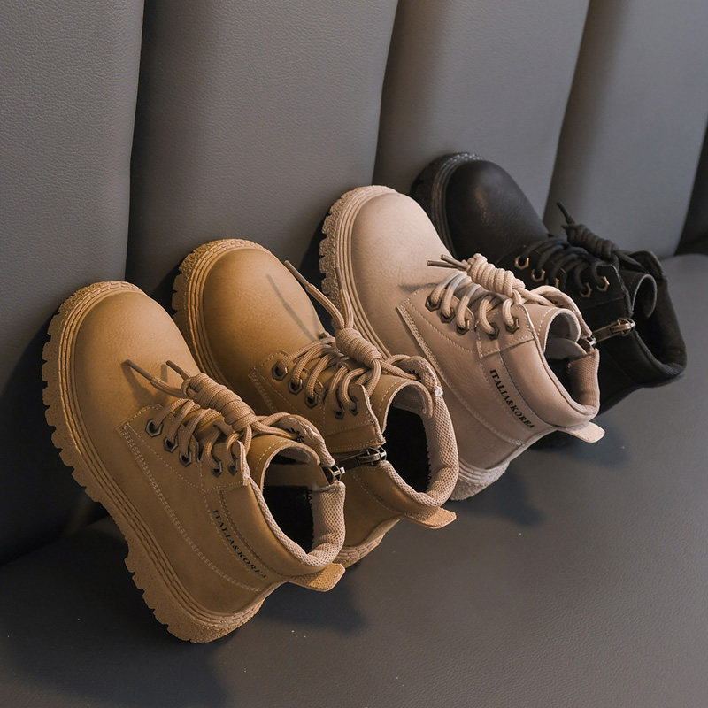 Martens, зимние детские короткие сапоги для мальчиков в английском стиле, флисовые ботинки, из натуральной кожи, 2023, в британском стиле