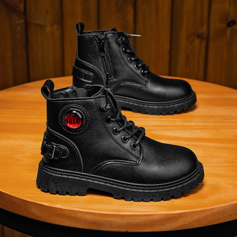 Martens, детские ботинки для мальчиков, черные короткие сапоги в английском стиле, коллекция 2021, подходит для подростков, осенние