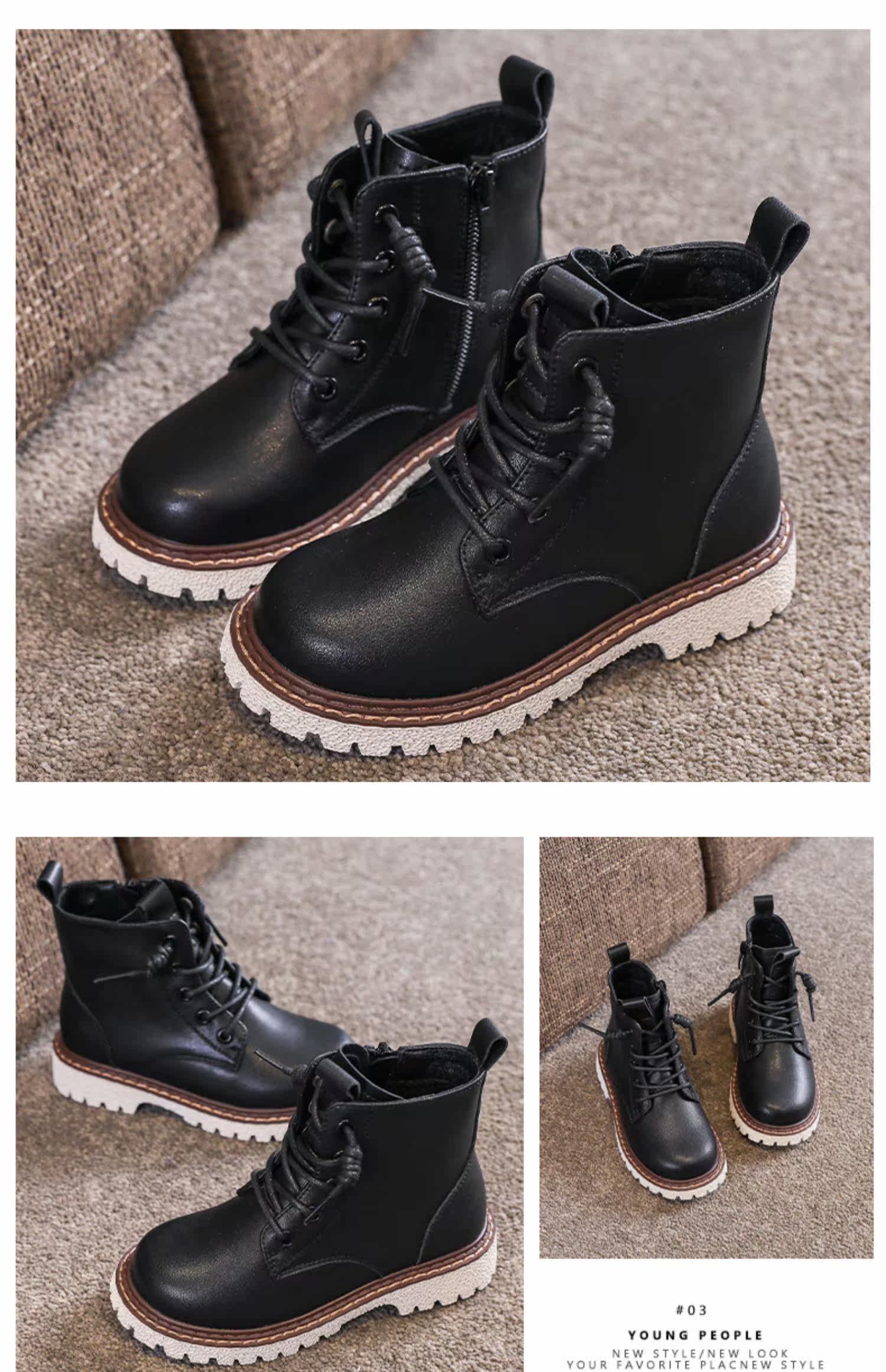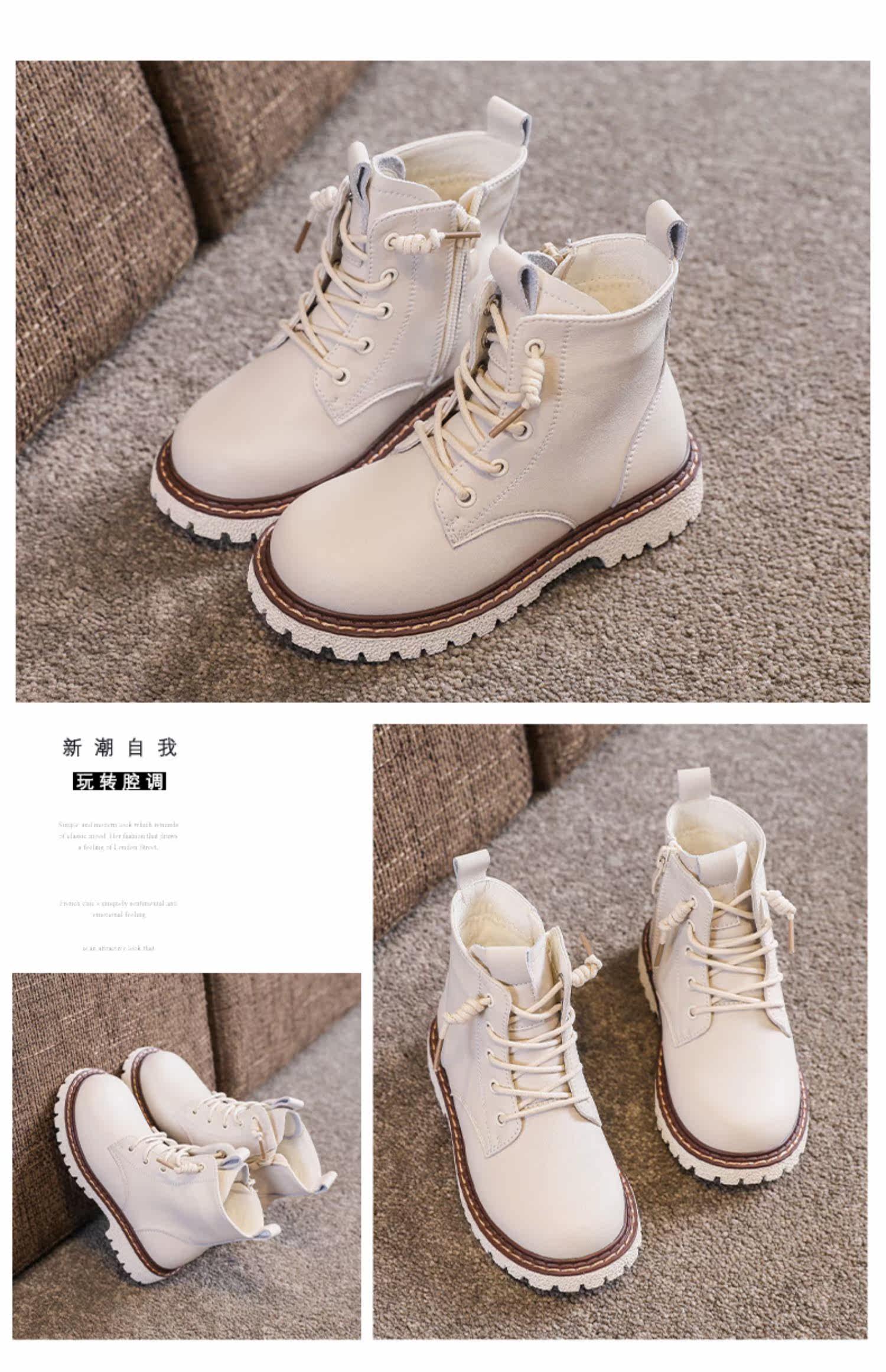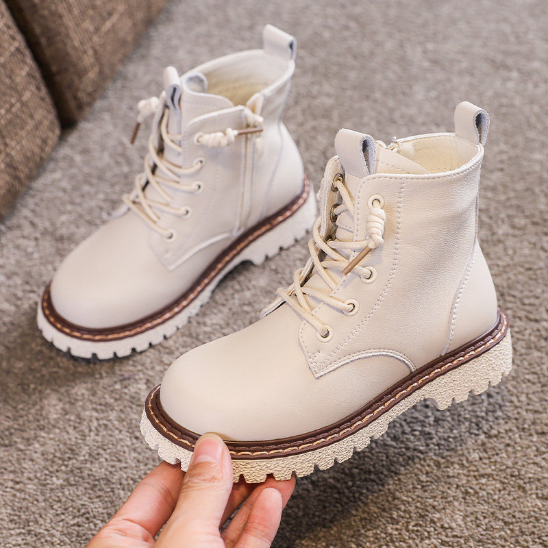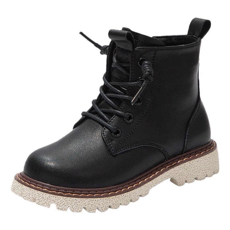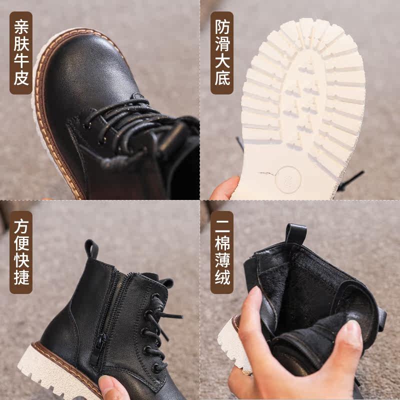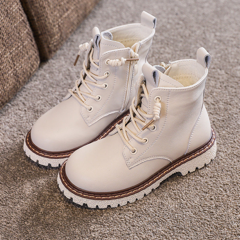 Martens, демисезонные флисовые детские сапоги, коллекция 2021, из натуральной кожи, мягкая подошва, средней длины