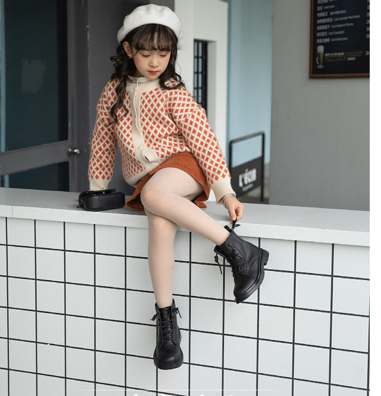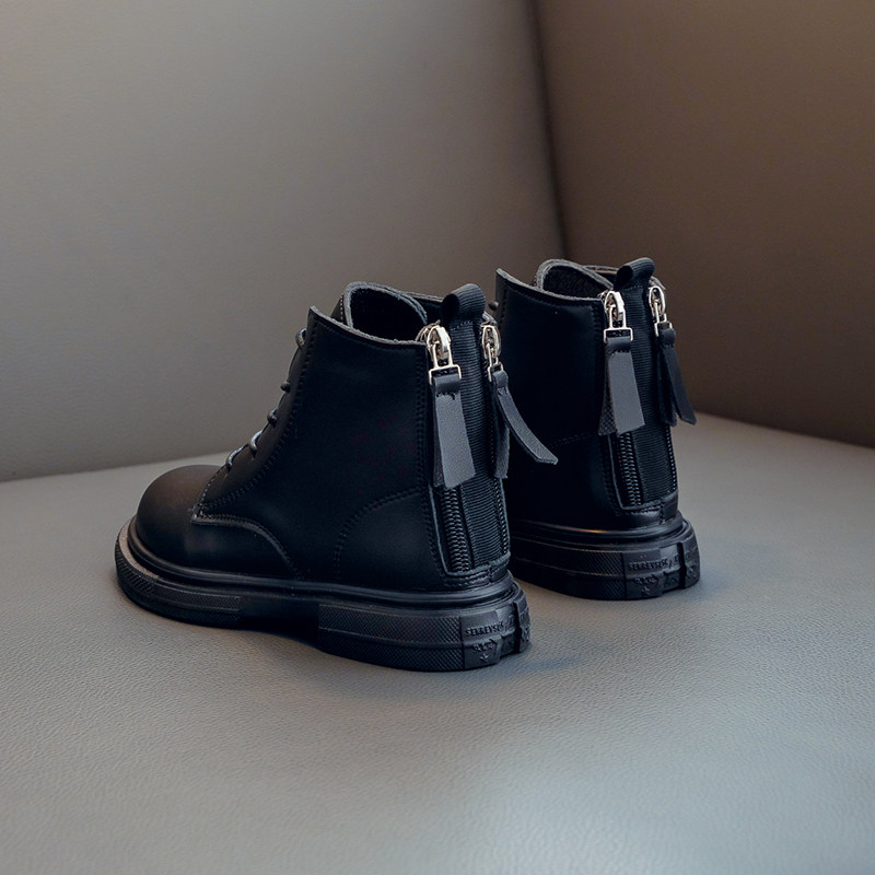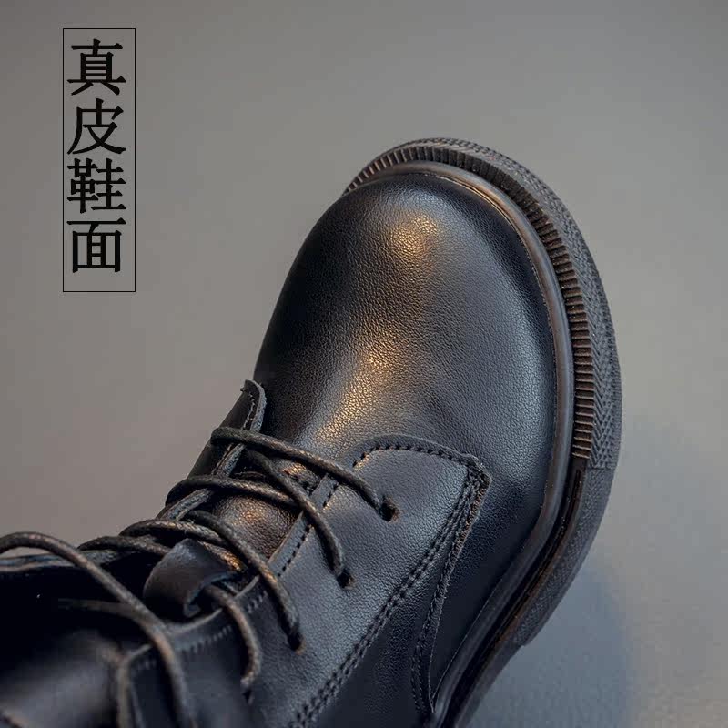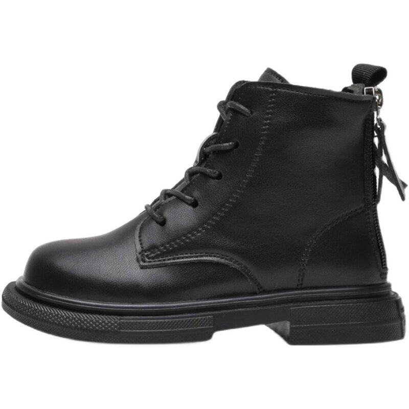 Martens, флисовые детские черные демисезонные короткие сапоги в английском стиле для принцессы, коллекция 2021, из натуральной кожи
