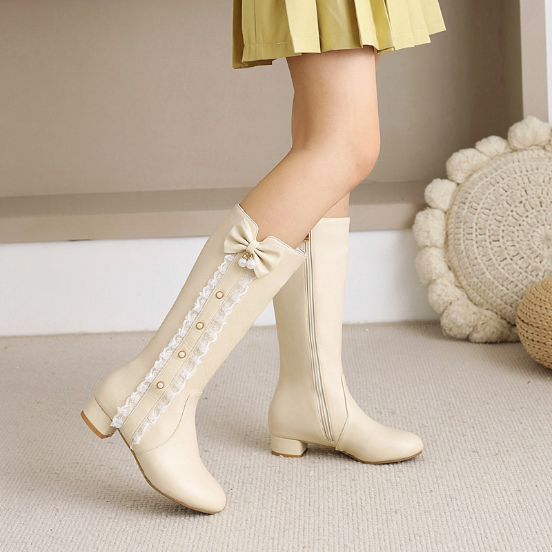 Ботинки, демисезонные высокие сапоги, детская утепленная обувь на высоком каблуке для принцессы