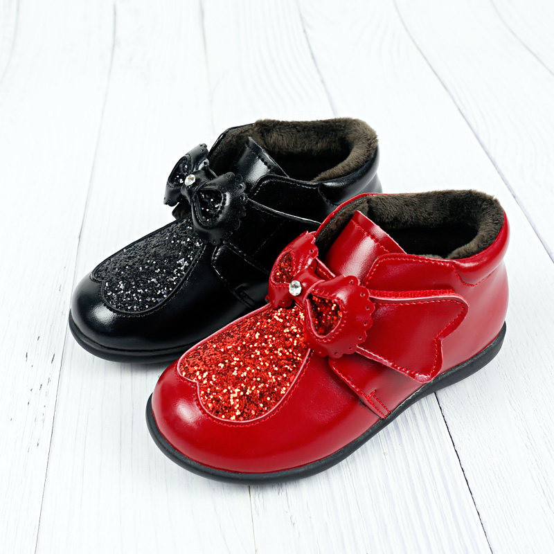 Утепленная детская зимняя обувь для принцессы, короткие сапоги, из натуральной кожи