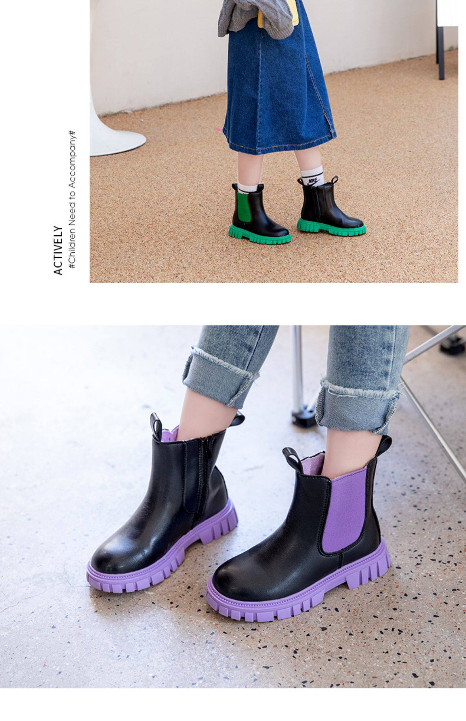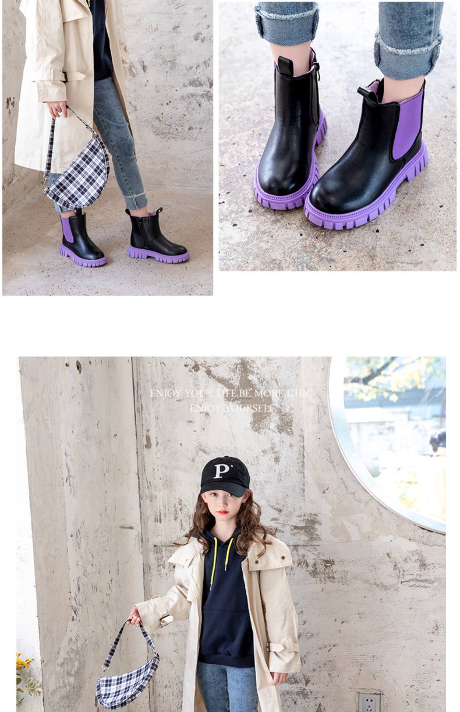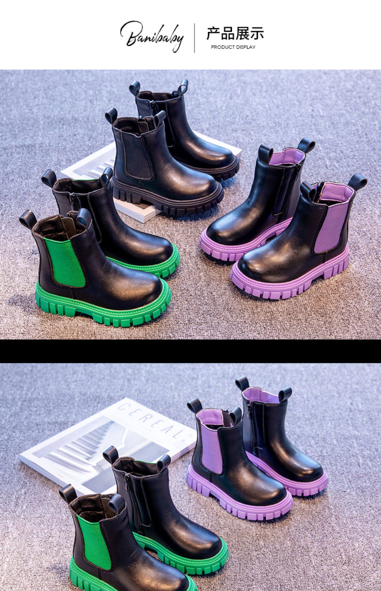 Martens, флисовые ботинки, демисезонные детские черные короткие сапоги для мальчиков, коллекция 2022
