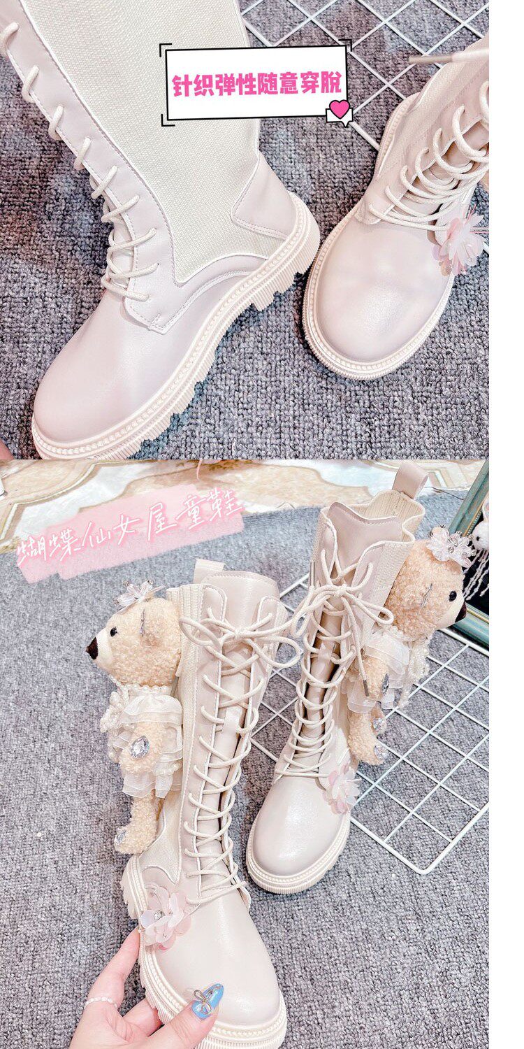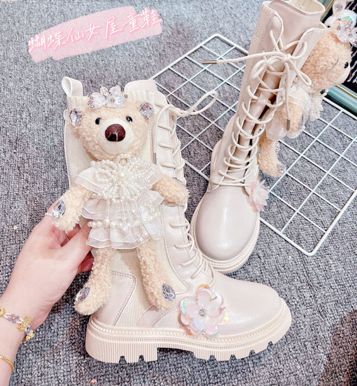 Martens, ботинки, осенний наряд маленькой принцессы, детские высокие сапоги, с медвежатами, подходит для подростков